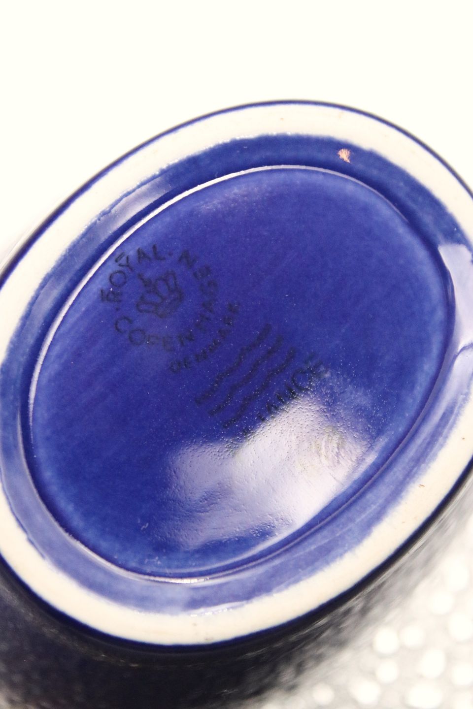Original Ursula faience small oval serving bowl from Royal Copenhagen designed by Ursula Munch-Petersen in dark blue glaze.H: 4.7cm. 8.5x6.5cm. Decoration number: 570. 1.sort.
