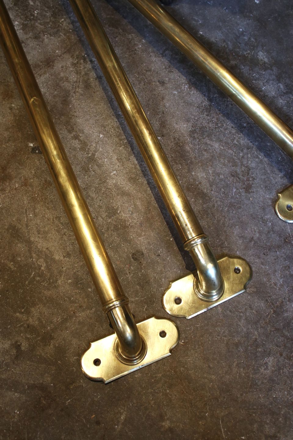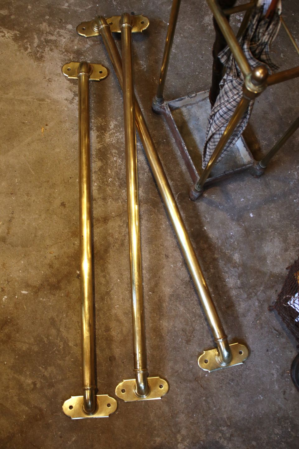 Old brass rods to screw onto the wall in strong quality and with a really nice patina. Length: 106cm. - 2 pcs. Length: 96cm. - 1 pc.Great as a towel holder or as a coat rack.