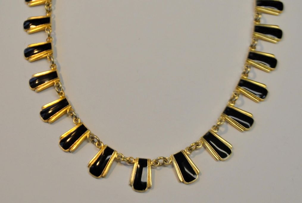 Volmer Bahner & Co, Copenhagen (1962 - 1987): Necklace gold-plated sterling with enamel. Stamped. L.: 39 cm.Item number: 28639