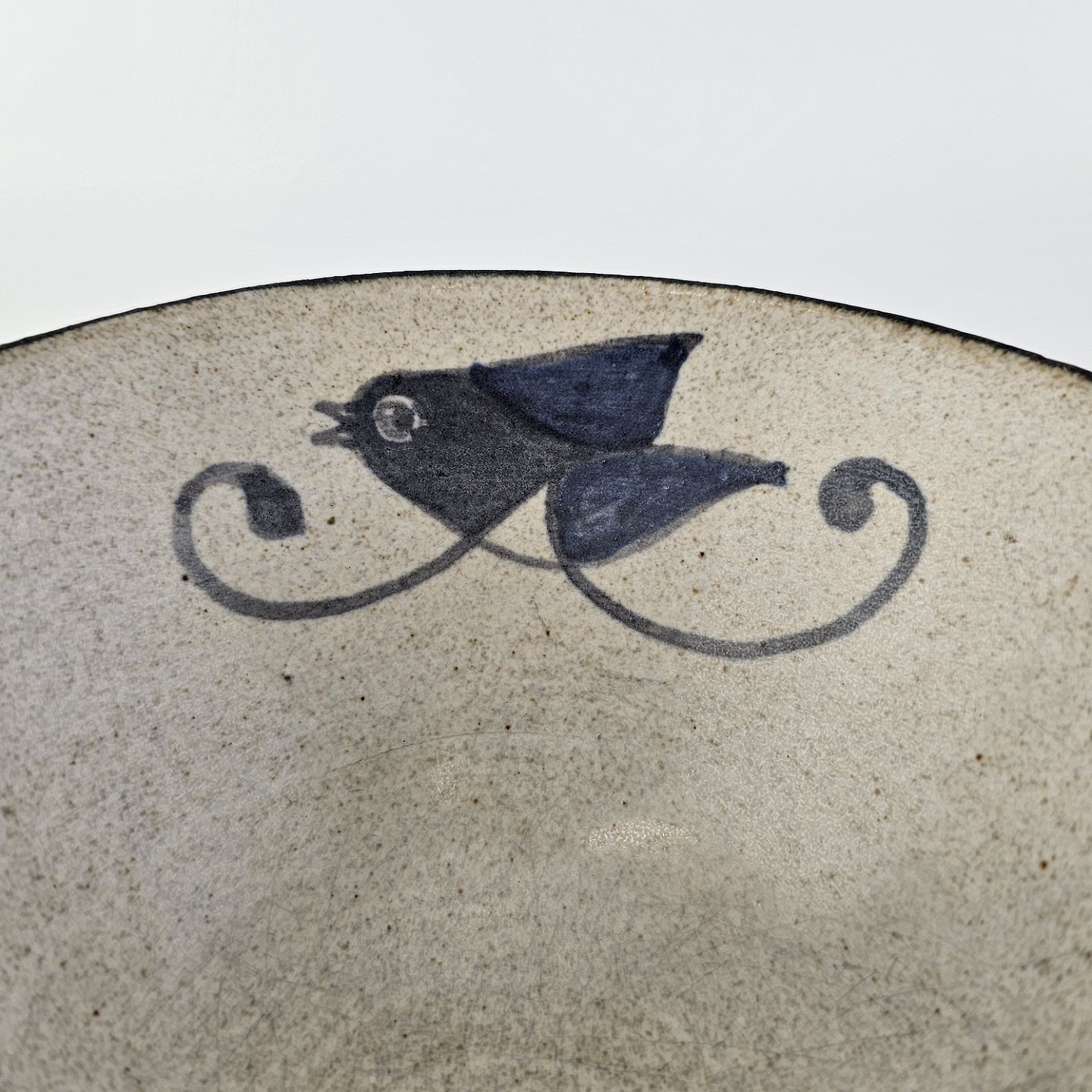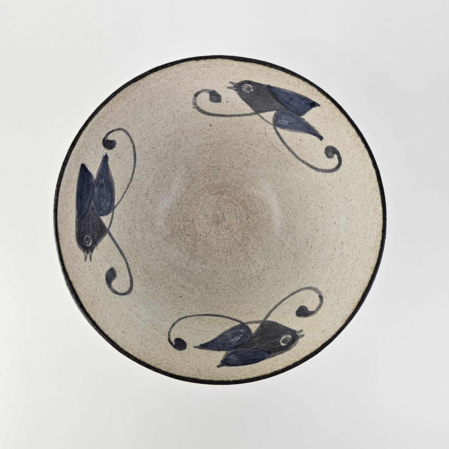 Skål i keramik med motiv af blå fugleProducent Herman Kähler