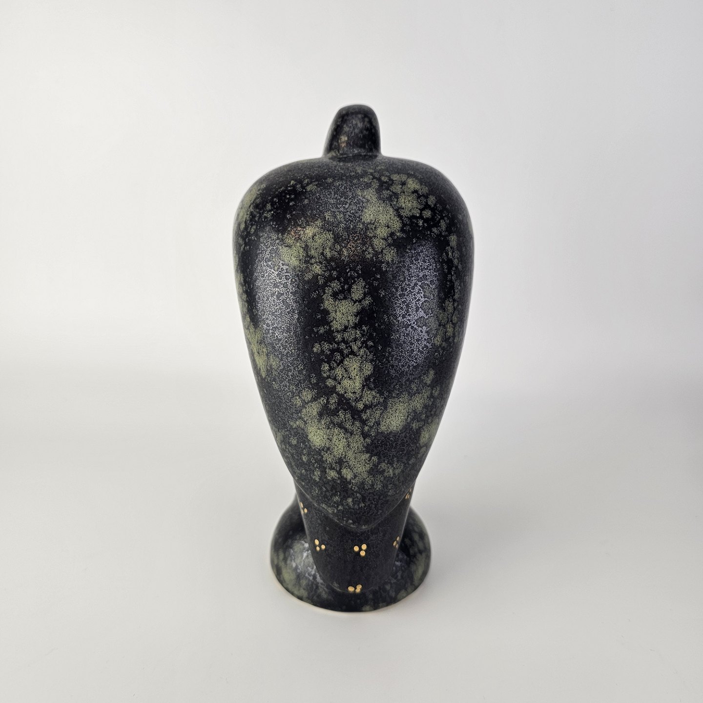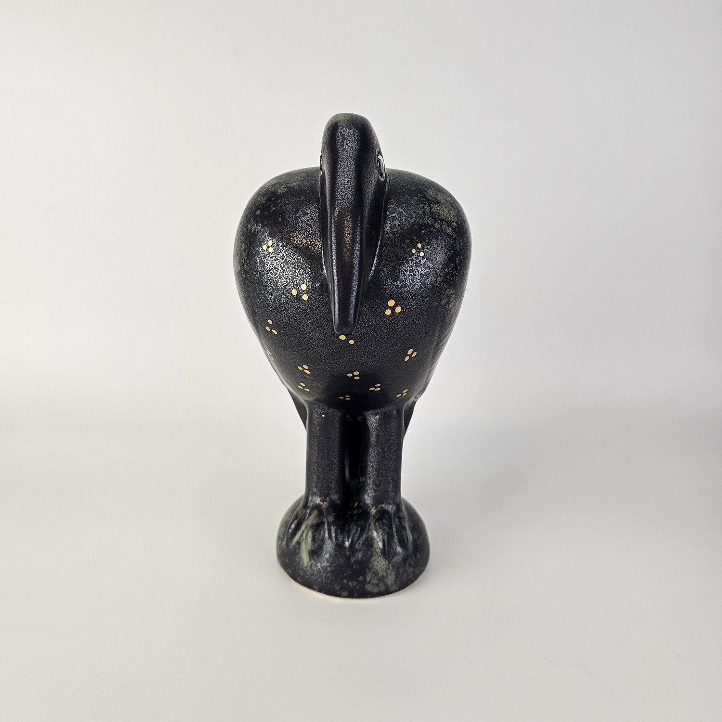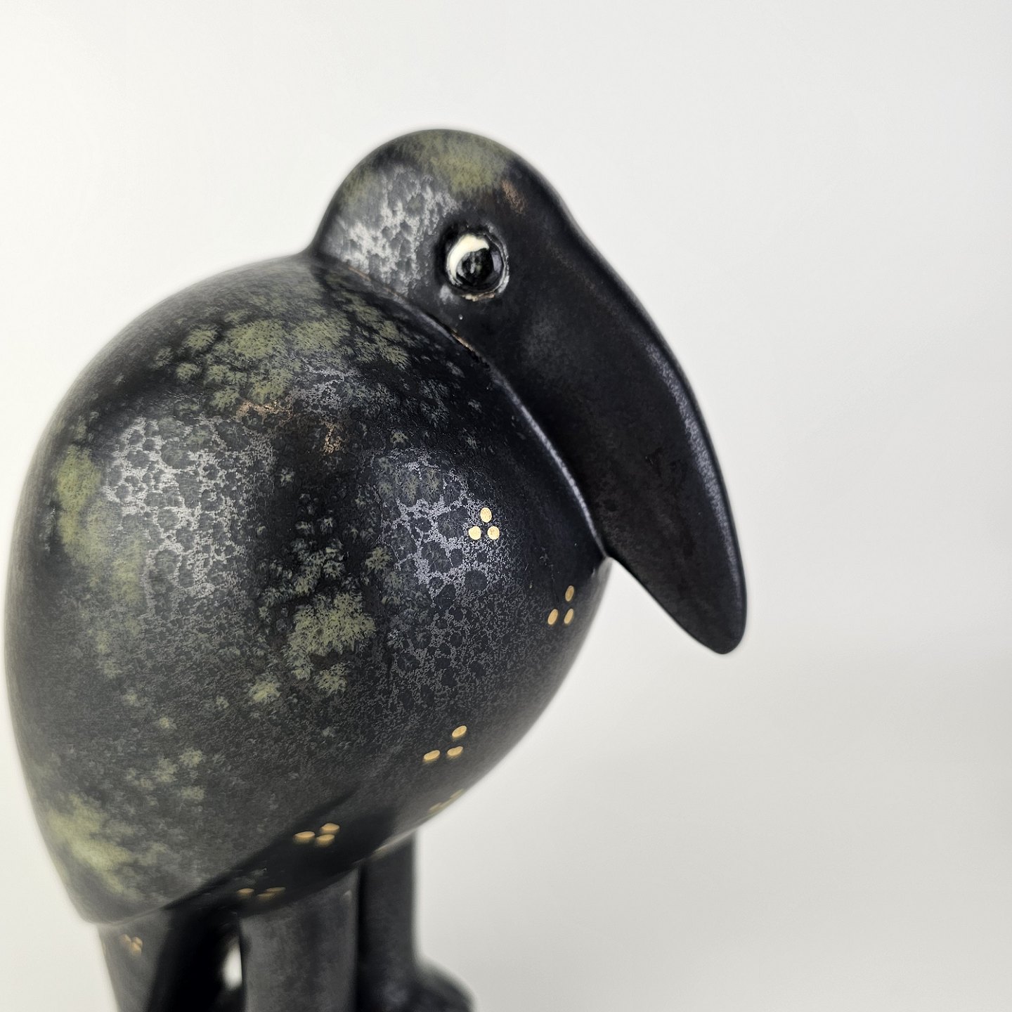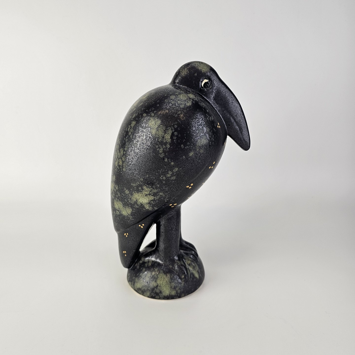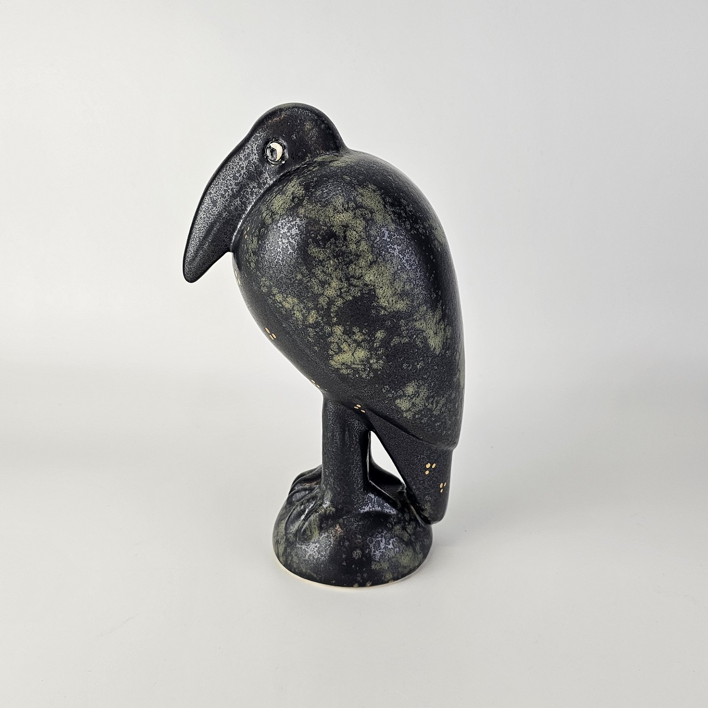 Figur i glaseret stentøj med motiv af en krageFiguren hedder Fingal og er fra serien Fenix