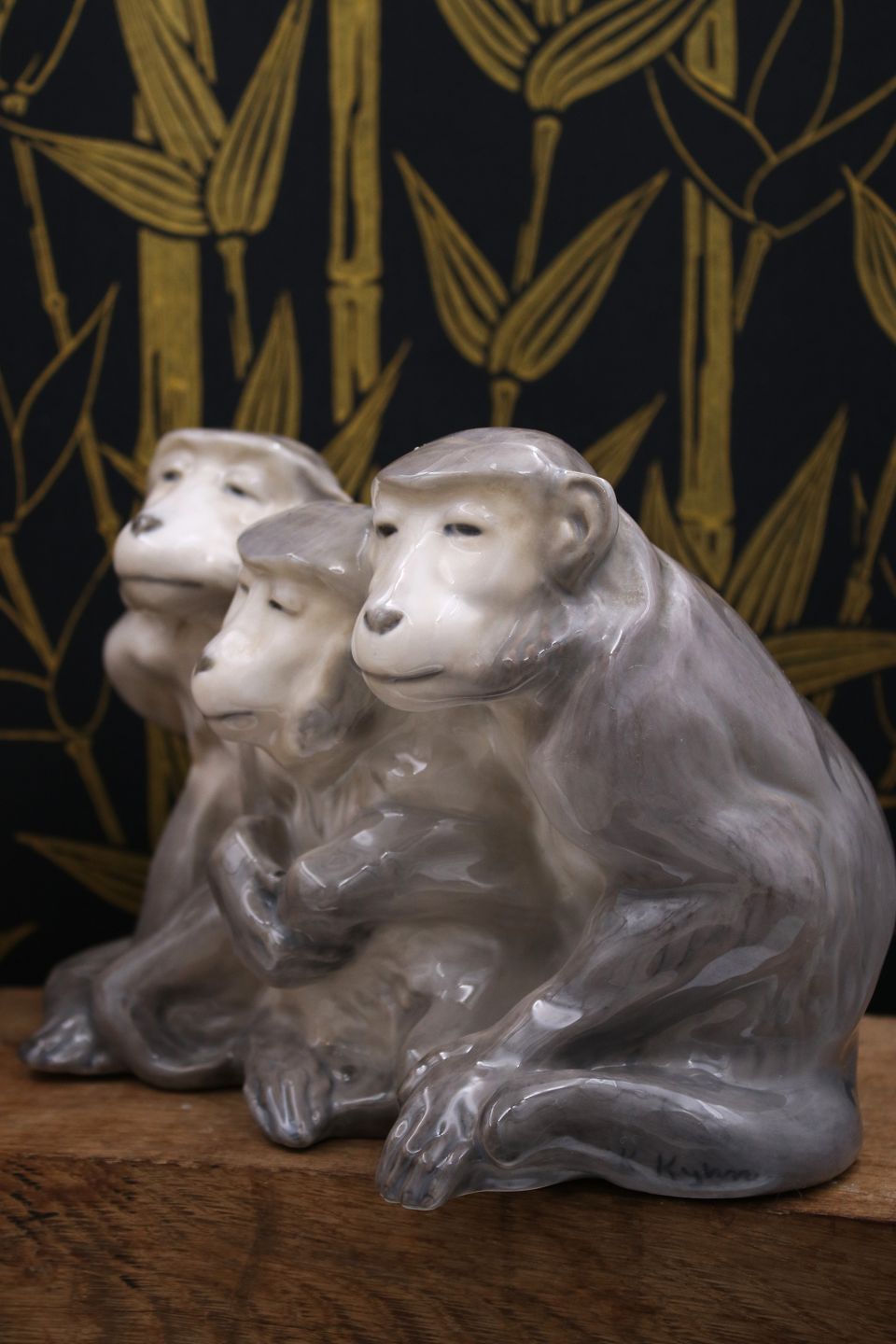 Royal Copenhagen porcelain figurine of 3 monkeys, design by Knud Kyhn. Decoration number: 1454/940. 2.sort. from 1923-28.