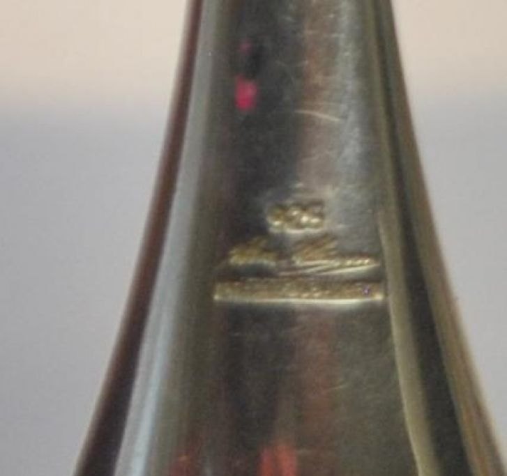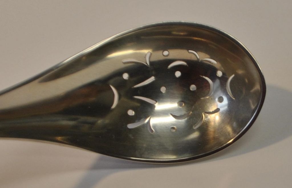 Hans Hansen sterling ice spoon, 20th century. Kolding, Denmark. With hole decorations in the laf. Stamped: Hans Hansen 925 sterling Denmark. L. 17.5 cm. Weight: 64 grams.Perfect condition!