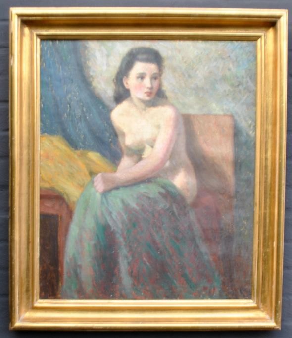 Helme, Helge (1894 - 1987) Denmark: A seated model. Oil on canvas. Signed: H. Helge 1945. 65 x 53 cm.Framed: 79 x 66 cm.