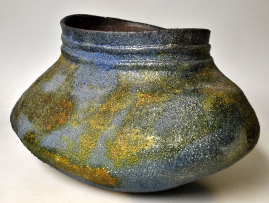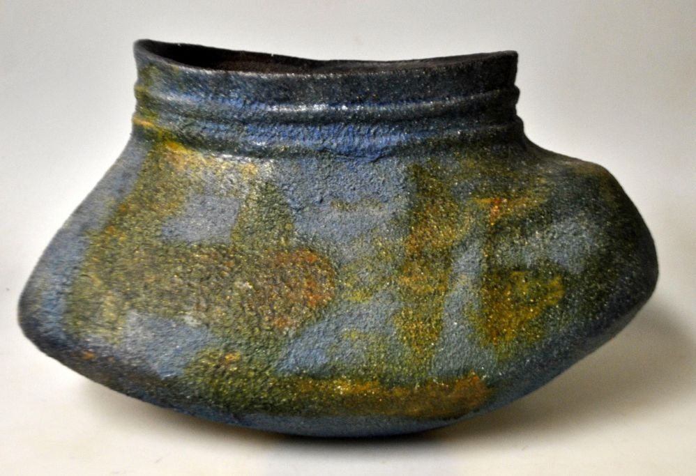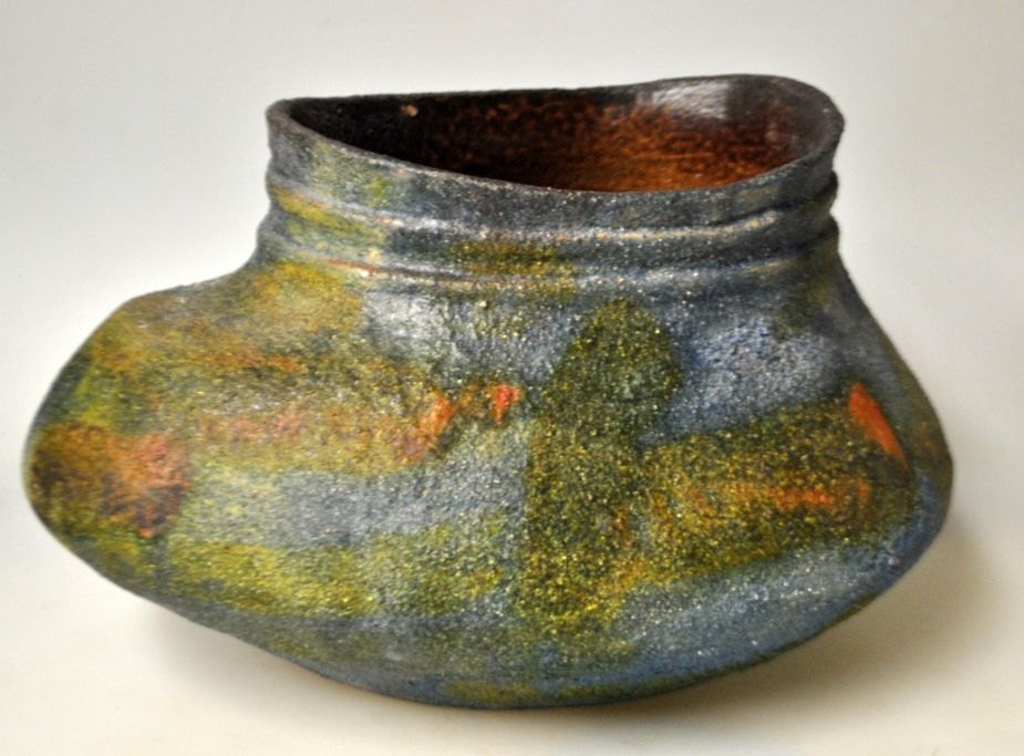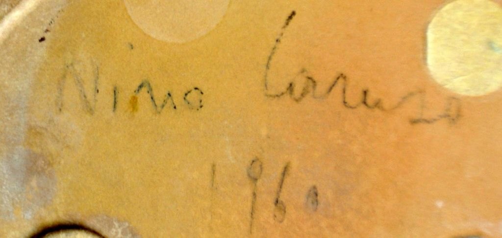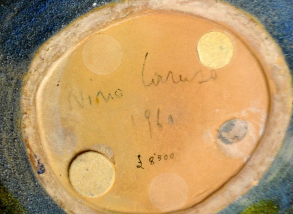 Caruso, Nino (1928 - 2017) Italy: Large table bowl. Unique. Red clay with structure. Glazes in green, red and blue. Signed: Nino Caruso 1960. H.: 14 cm. L.: 28 cm.Item number: 28661