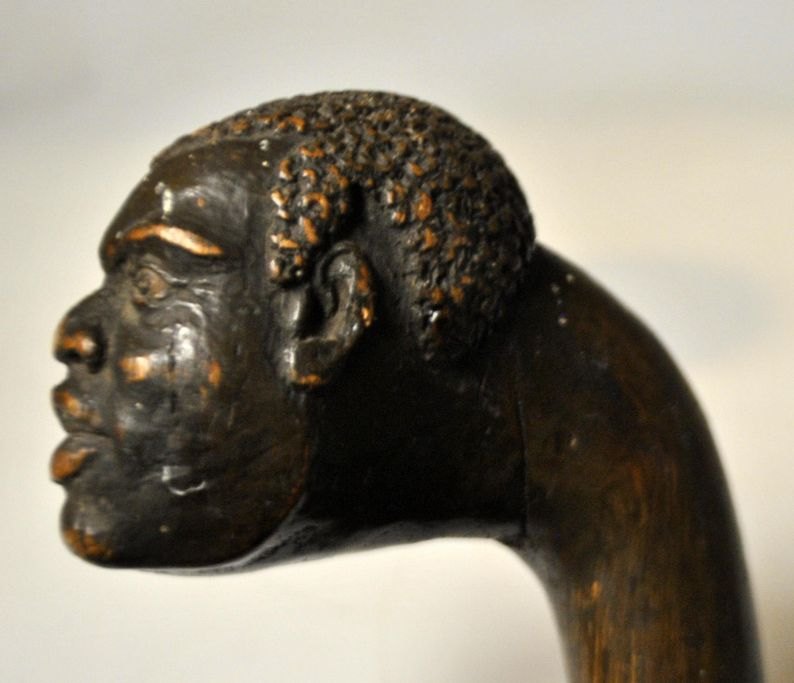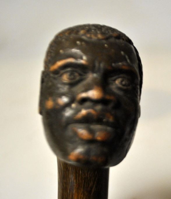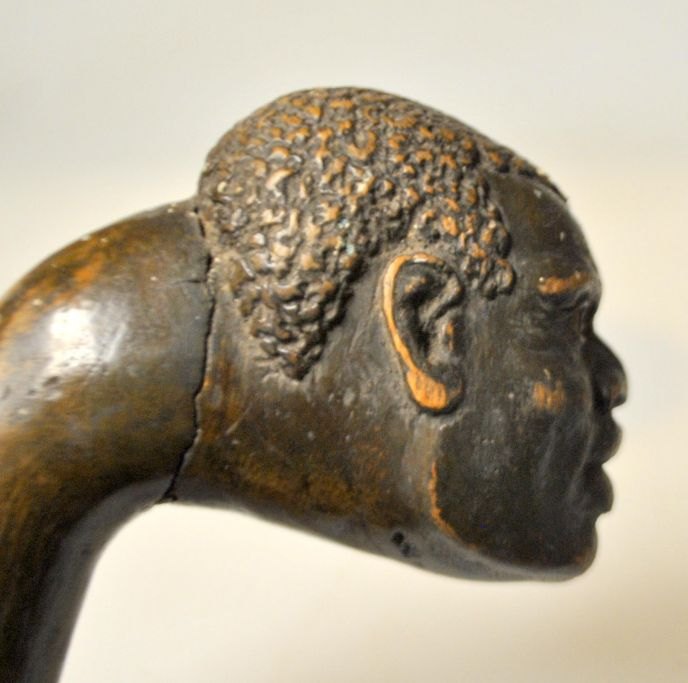 Wooden walking stick with carved face, 19th century. L.: 90 cm.Item number: 28673