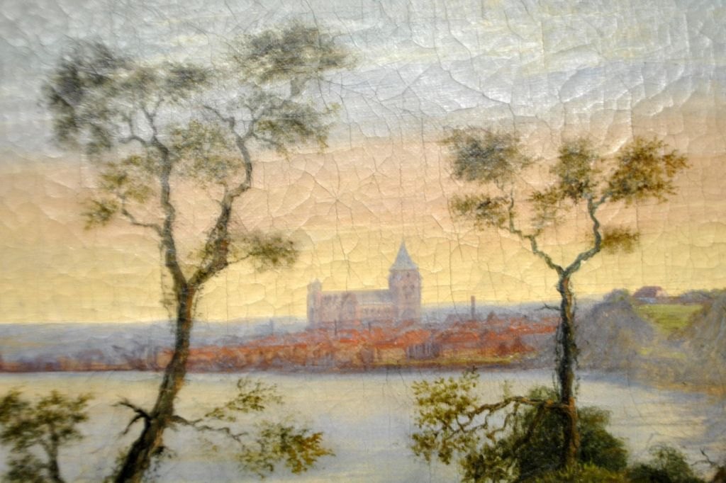Holm, Peter (1798 - 1875) Denmark: View over the bay of Aarhus towards Aarhus with the Cathedral. View from Risskov. In the foreground is a hiker. Unsigned. 40 x 55 cm.Unframed.
