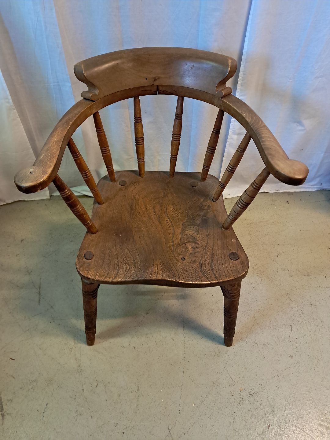 Kaptainstol i massivr ege og bøgetræ, fra 1930erne.Den har brugsspor.