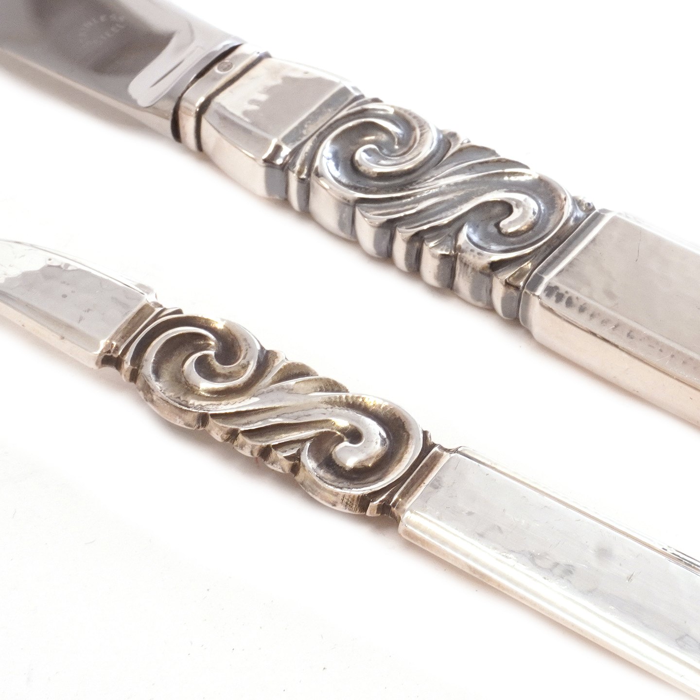 Johan Rohde for Georg Jensen Scroll Sterlingsilver cutlery6 Knifes (L: 19,5cm), 6 forks (L: 18cm) and 6 spoons (L: 17cm)