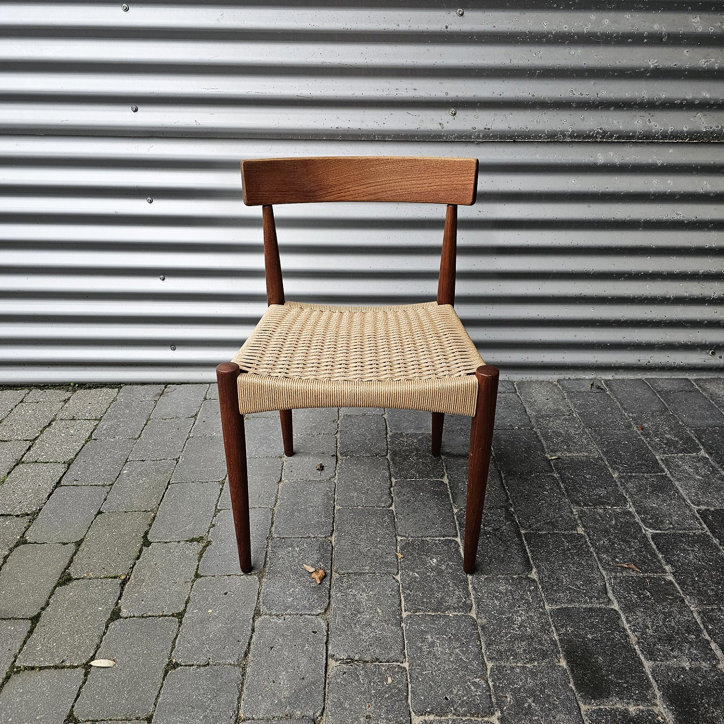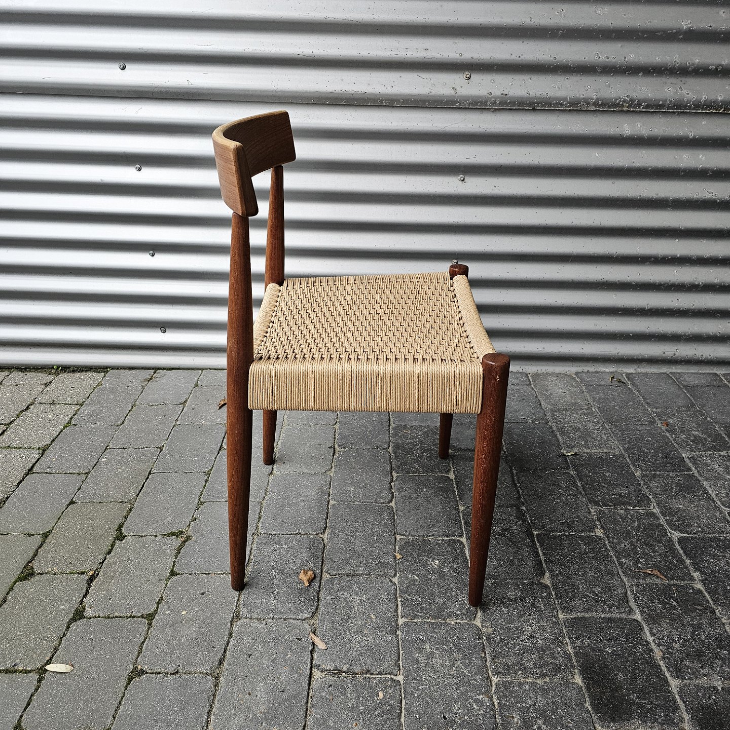 4 spisebordsstole i teak med nyflettet sæder, originalt bundet.Model MK 200