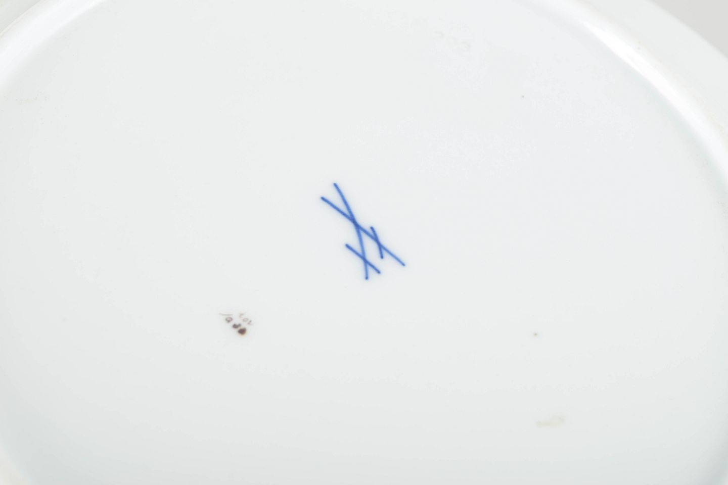 Meissen, two plates, hand-painted.Two elegant porcelain plates with hand-painted floral decorations in classic Meissen style. Both examples feature a fine gold rim.