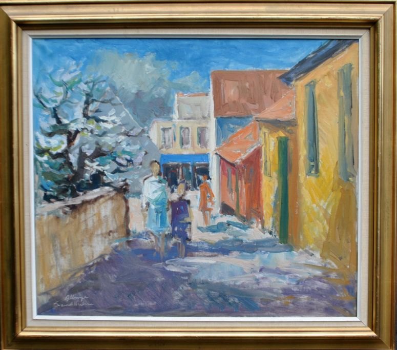 Nielsen, Svend (1908 - 1993) Denmark: Scene from Allinge. Bornholm. Oil on canvas. Signed. 60 x 70 cm.Framed: 78 x 85 cm.