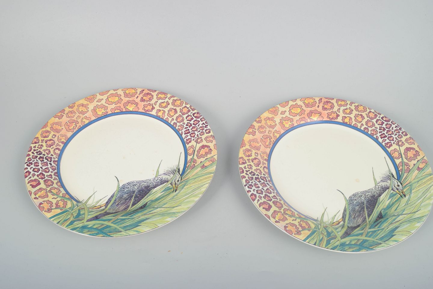 Two decorative faience dinner plates by Gien in the distinctive “Savane” pattern with its colourful border and naturalistic motif. A beautifully preserved pair.