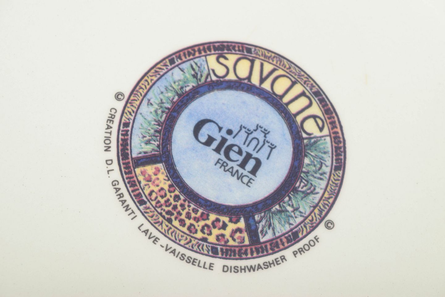 Founded in 1821, Gien is renowned for its artistically decorated faience, often featuring figurative and nature-themed motifs. The “Savane” series from the 1980s reflects the factory’s vibrant design language and remains sought after by collectors of French decorative ceramics.