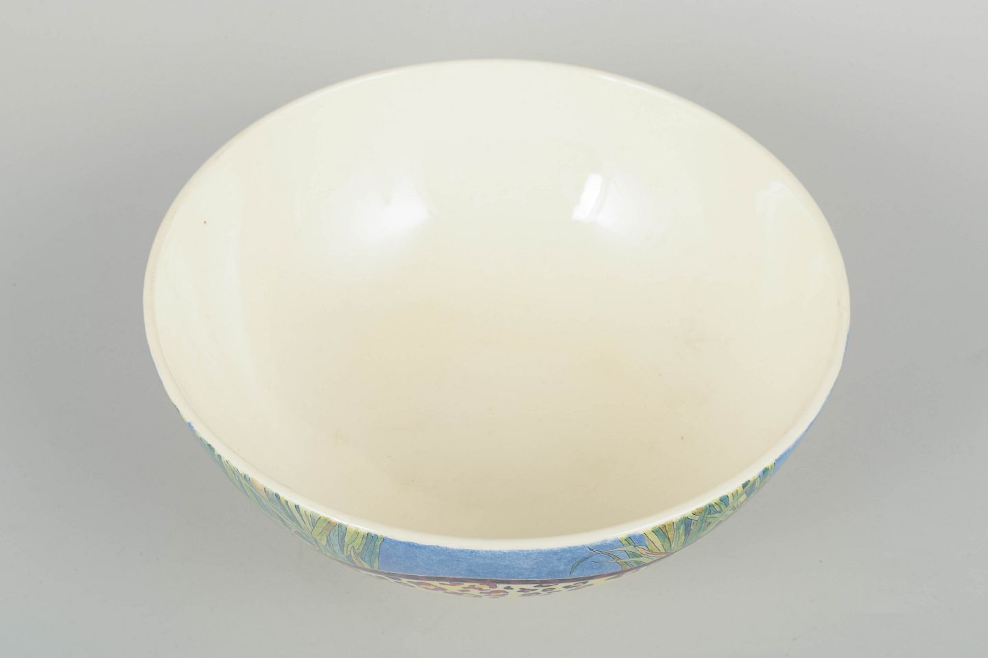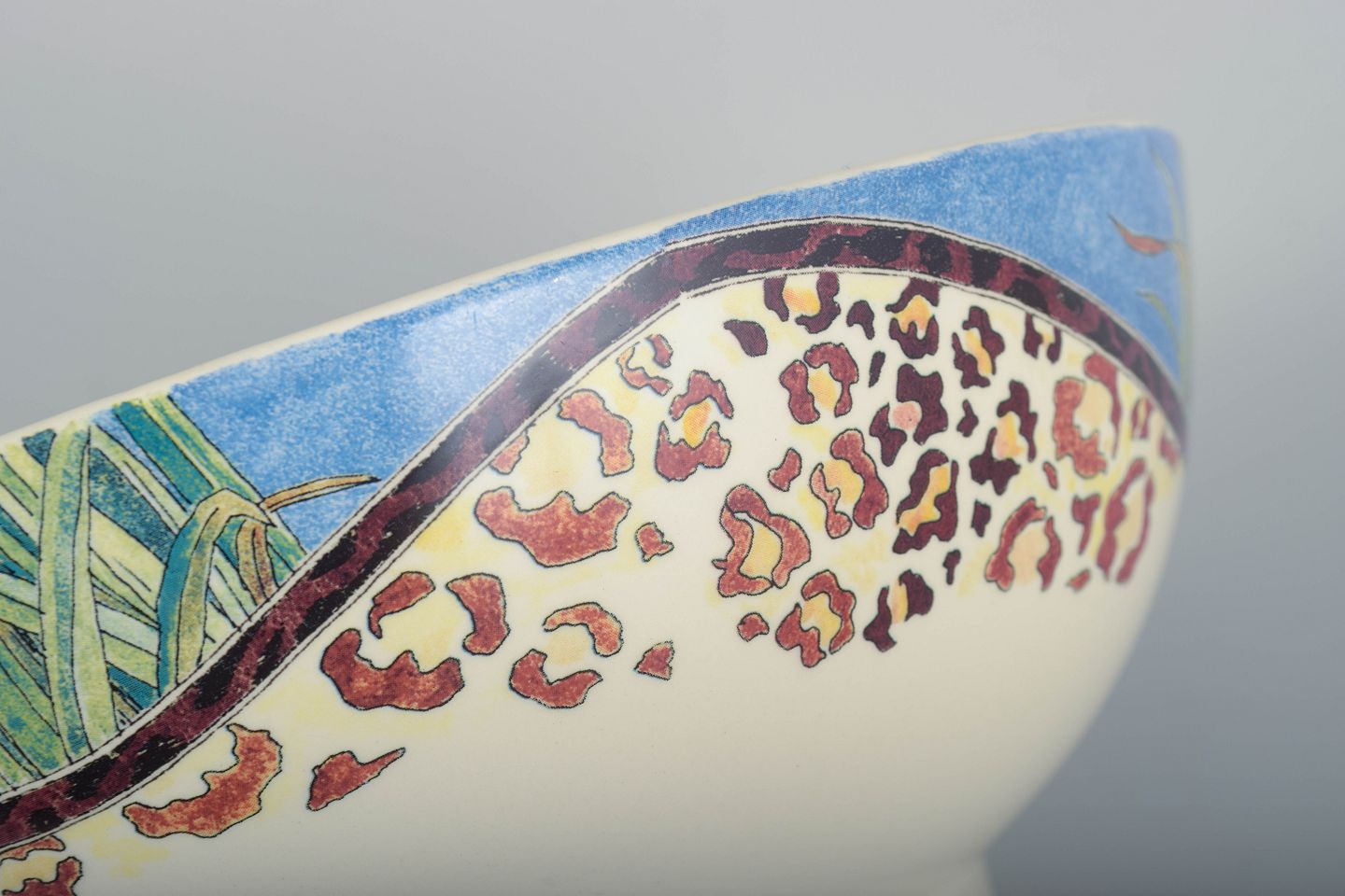 Decorative faience bowl by Gien in the vibrant “Savane” pattern featuring a flowing border with grass motifs and leopard-inspired detailing. A characteristic piece from the series’ lively, nature-oriented design.