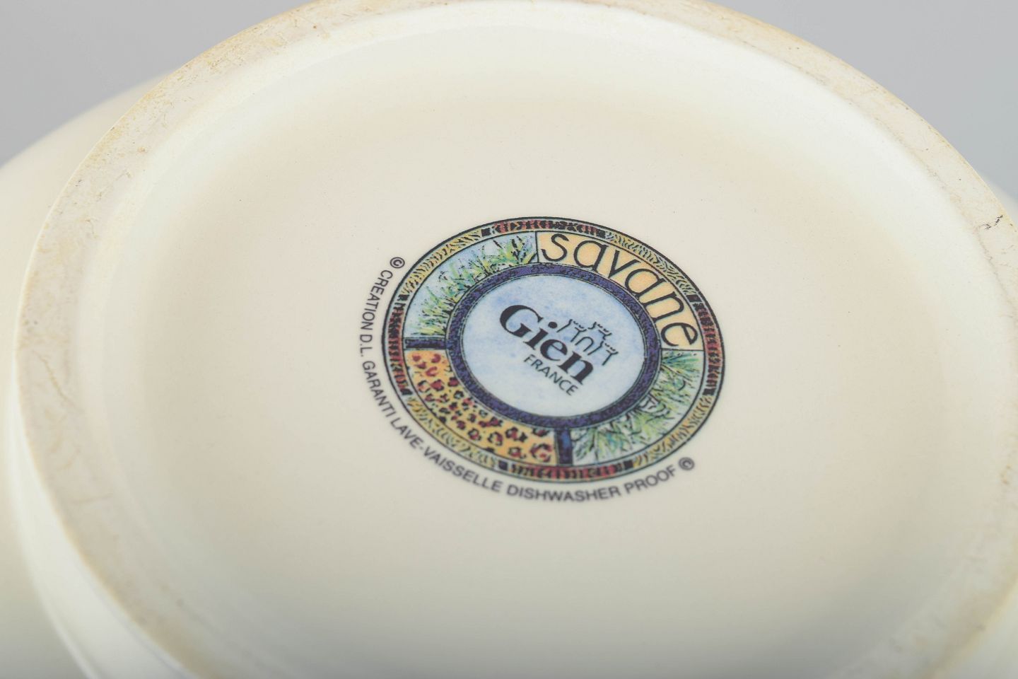 Founded in 1821, Gien is known for its artistically decorated faience, often incorporating nature themes and rich colour palettes. The “Savane” series from the 1980s exemplifies the factory’s expressive approach and remains highly collectible within French decorative ceramics.