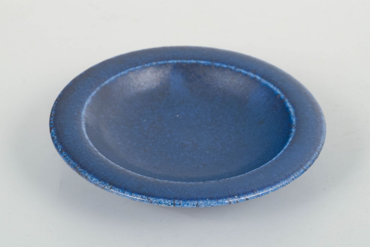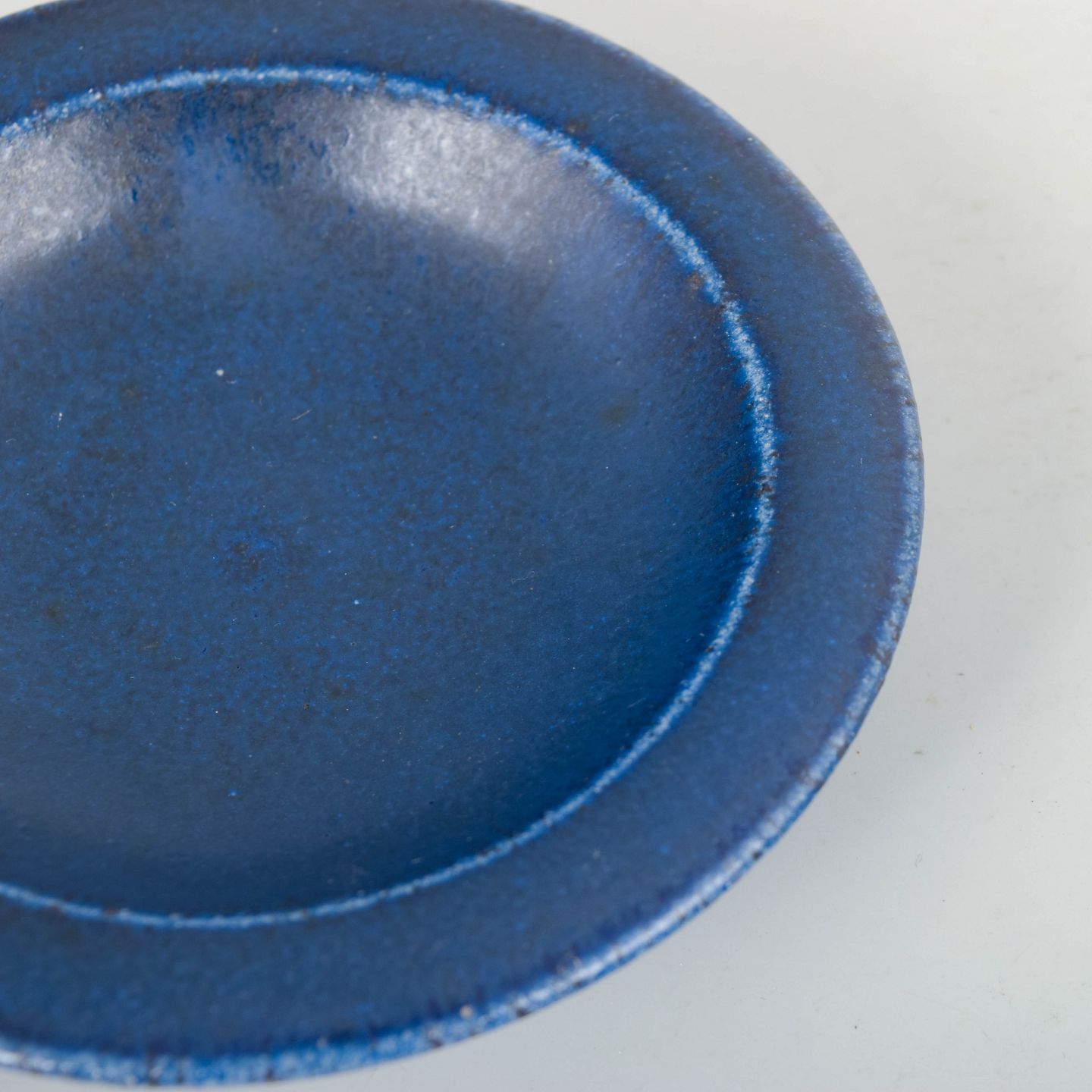 Small stoneware dish featuring the characteristic deep blue Saxbo glaze. A refined, minimalist form with the classic matte surface typical of the workshop’s high-fired stoneware.