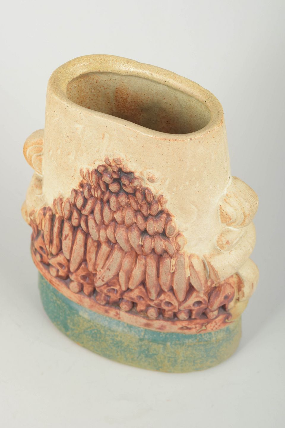 Sculptural hand-glazed stoneware vase, characteristic of Rooke’s organic vocabulary with bold relief modelling and a highly tactile surface.