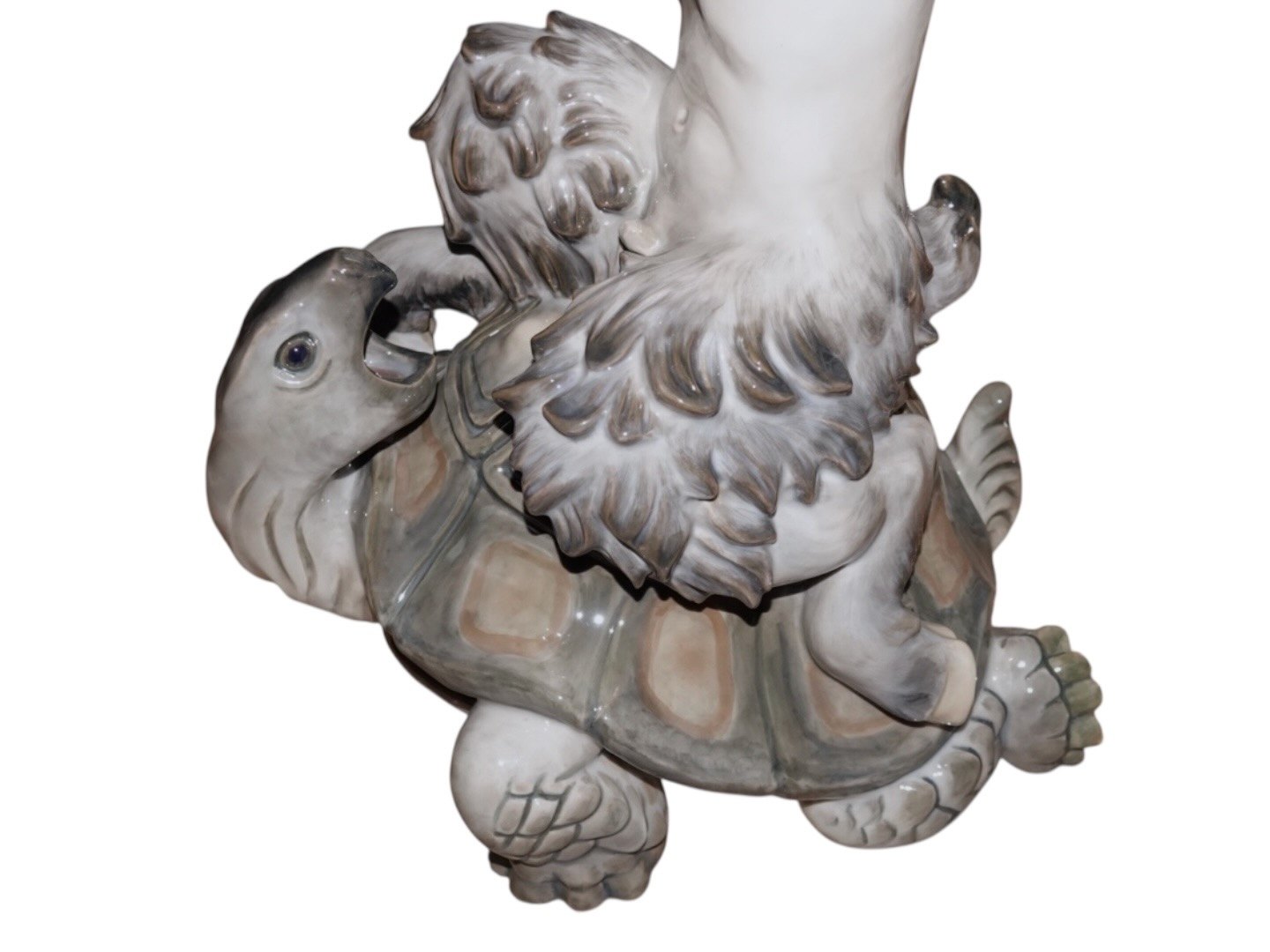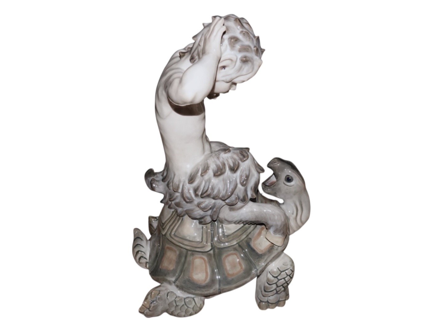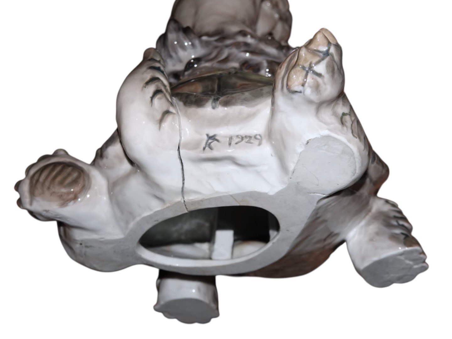 Very rare and enormous Royal Copenhagen figurine, Faun fighting a turtle. On the first picture you can see a "normal" faun figurine to compare the size.The factory mark tells, that this was produced between 1923 and 1928.