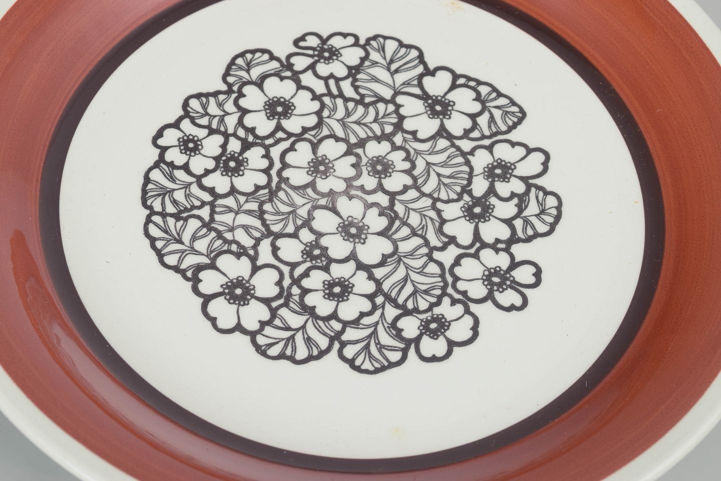 Gefle (Gefle Porslinsfabrik), founded in 1910 and later incorporated into the Upsala Ekeby group, produced a number of popular tableware series in the 1960s and 70s with bold graphic identities. The Agneta series is among the most recognisable, combining strong colour fields with botanical motifs—features that make it highly sought-after among collectors of Scandinavian retro stoneware today.