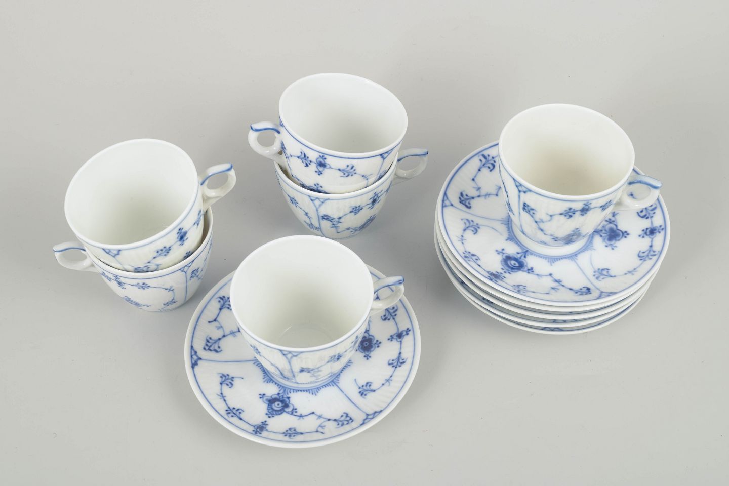 Royal CopenhagenBlue Fluted Plain – Set of Six Coffee Cups with mathing saucers, 1920s.