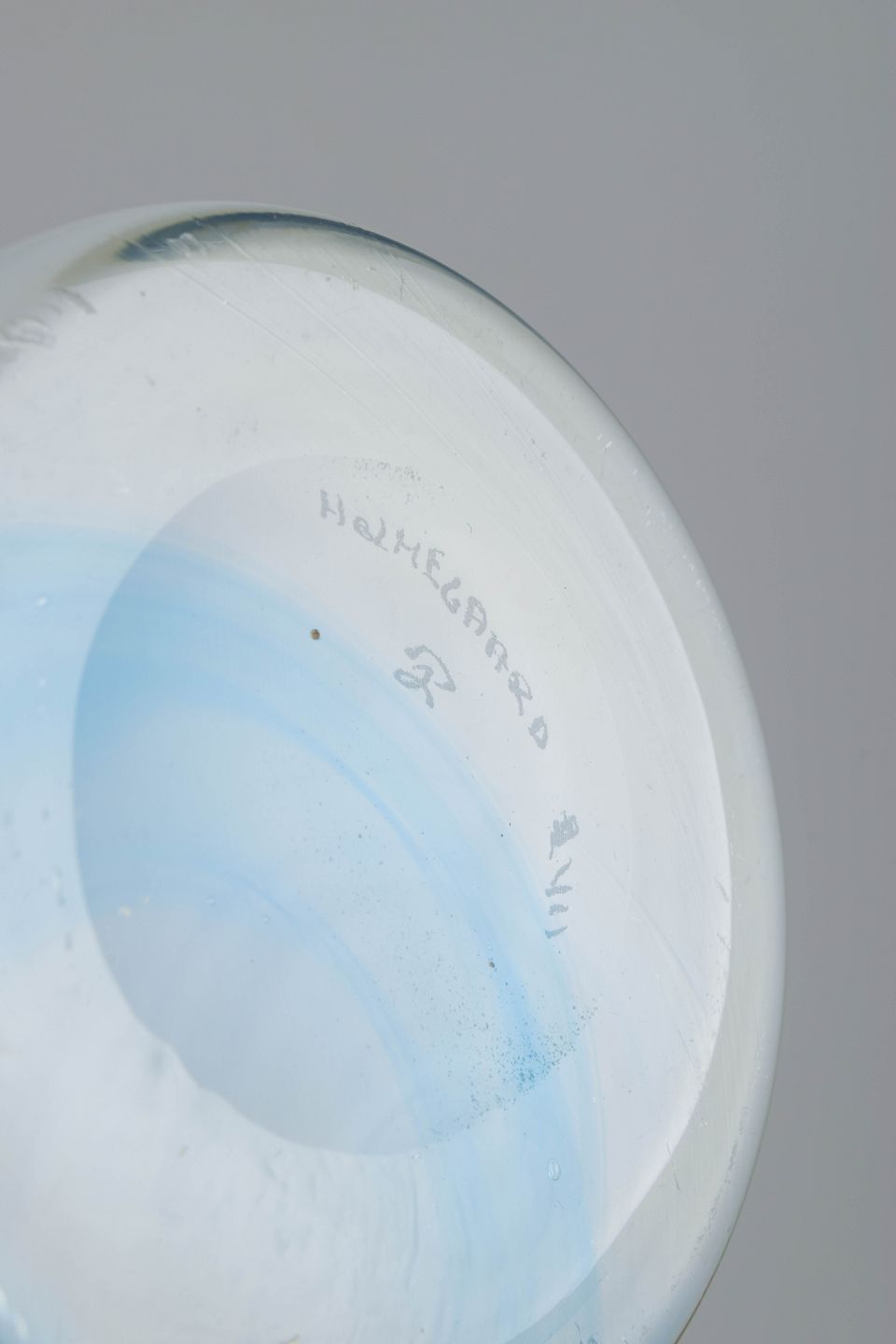 Per Lütken (1916–1998), Holmegaard’s principal designer for decades, created many of the company’s most iconic forms. During the 1960s and 70s he explored colour effects and fused decorations, resulting in pieces where each example functions almost as a small artwork. His designs remain highly prized today for their technical mastery, artistic expression and timeless Scandinavian modernism.