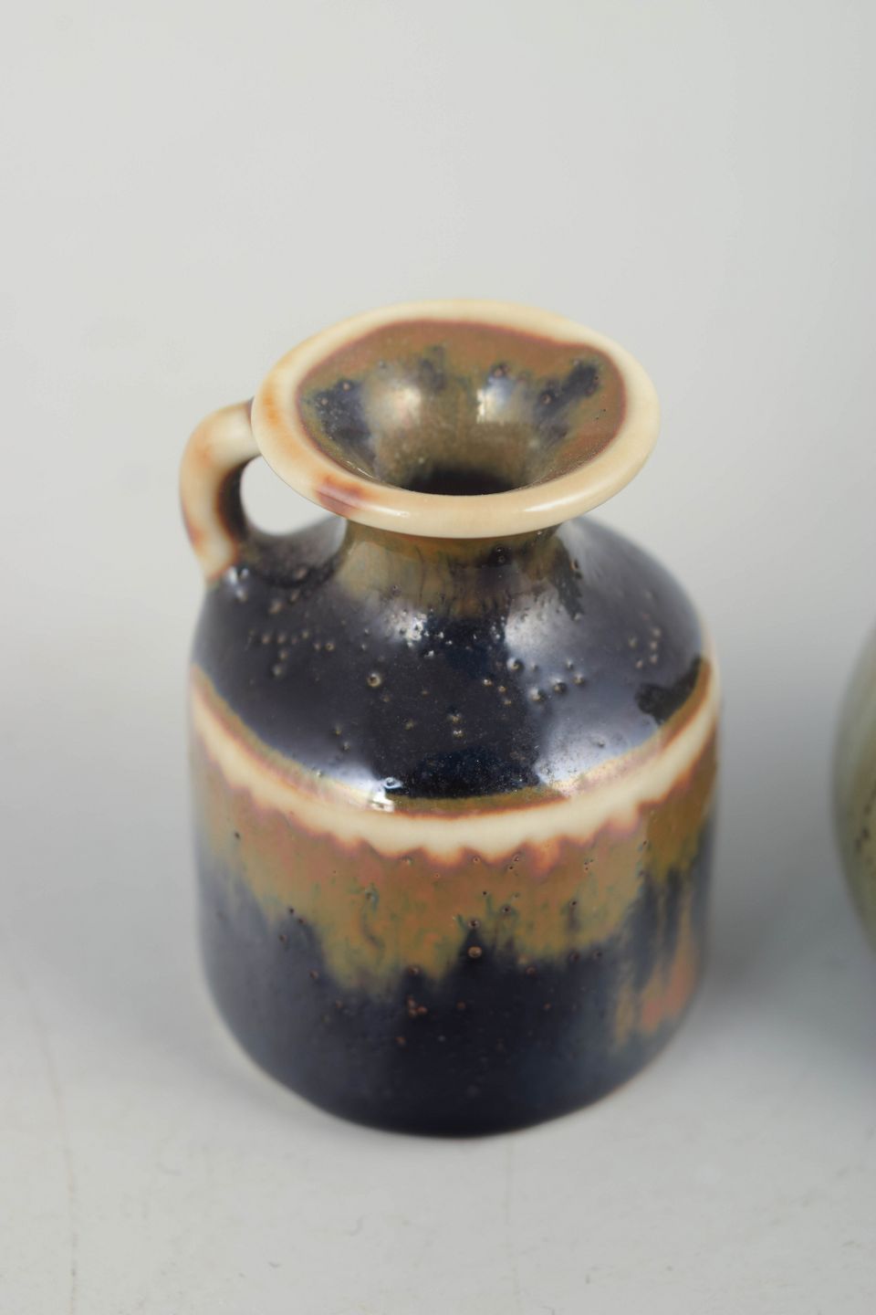 Two small hand-glazed stoneware miniature vases, each with its own organic form and Stålhane’s characteristic experimental glaze expression. Beautiful, collectible examples of his work in miniature scale.
