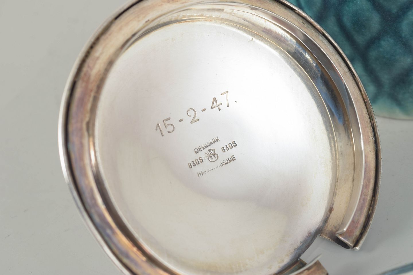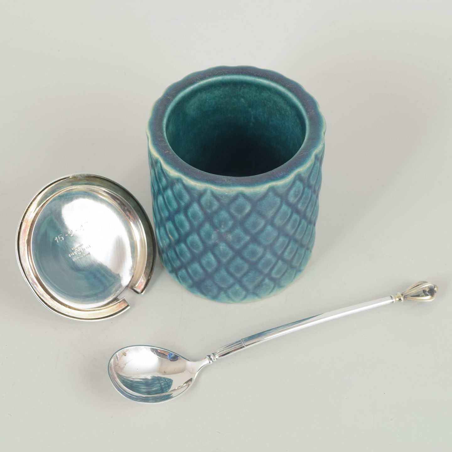 Erik Rahr for Saxbojam jar with 830 silver lid and 830 silver spoon, mid-20th century.
