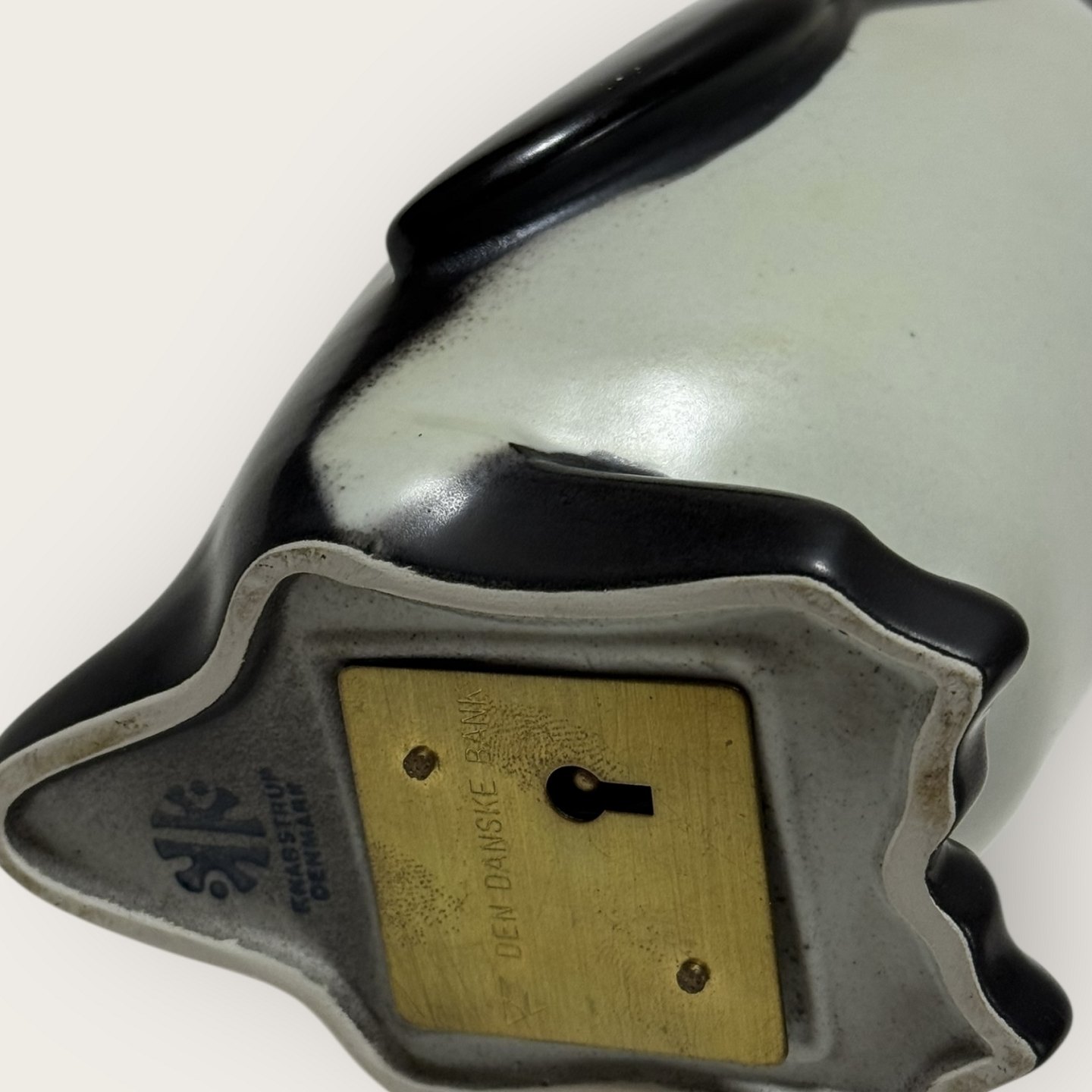 Knabstrup ceramics, Penguin money box, Pondus made for Den Danske Bank, 27cm high, good condition but missing key.Stock: 1
