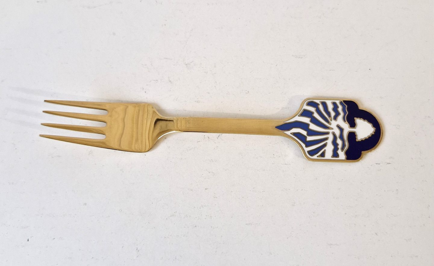 A.Michelsen Christmas fork in gold-plated sterling silver and enamel from 1986Stamp: A.Michelsen - Sterling - Denmark