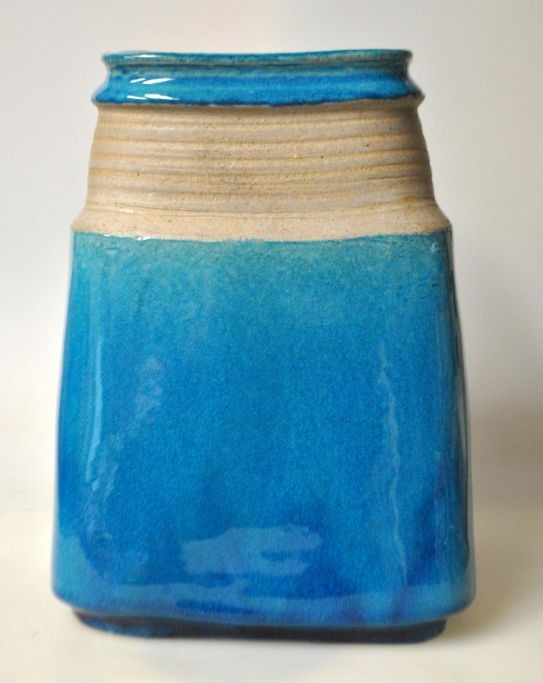 Kähler, Nils Joakim (1906 - 1979): Stort vase. Udført for H. A. Kähler, Næsteved. Turkis glasur. Med kantdekoration. Signeret. H: 23 cm. Dia.: 17 cm.Perfekt stand!