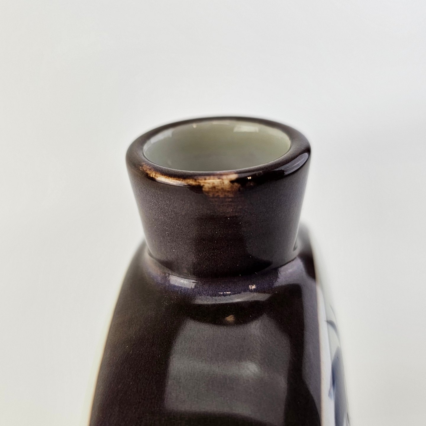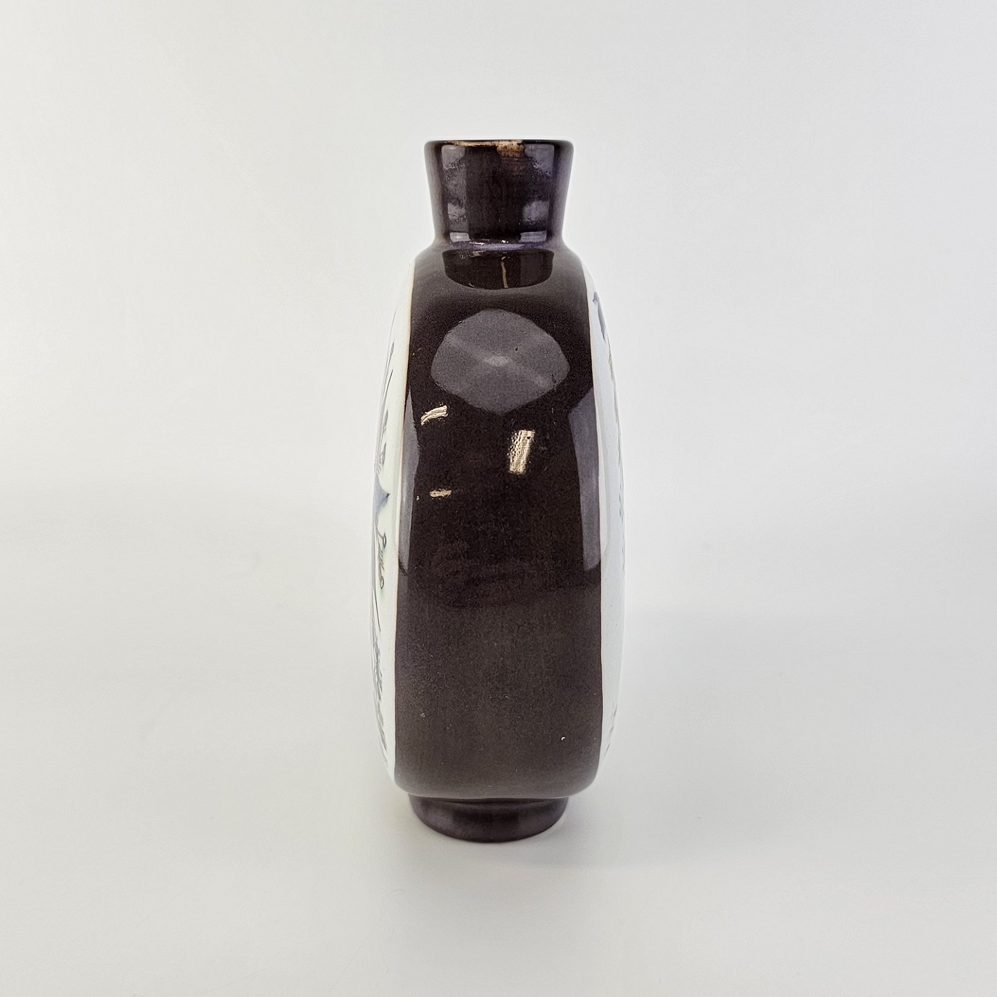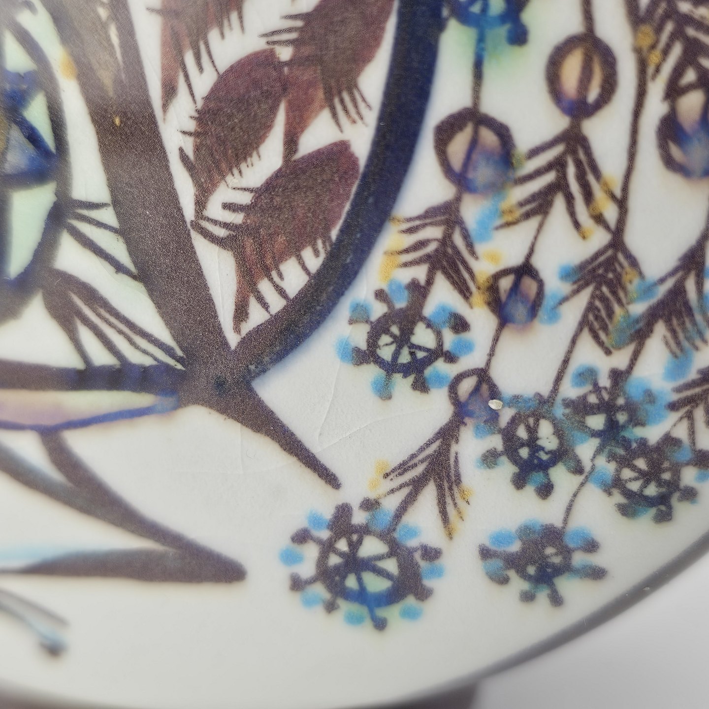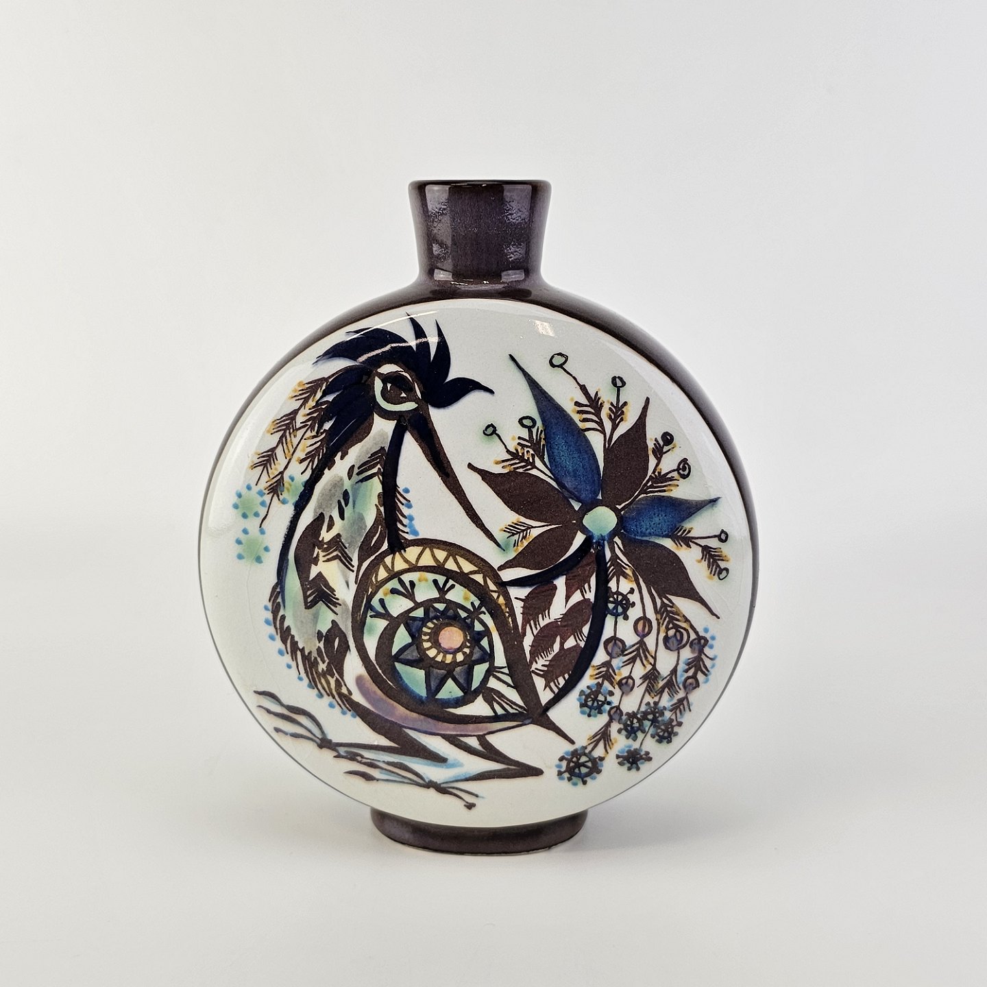 Rund flad vase fra serien Tenera. Vasen er i fajance med motiv af en fuglNr. 217/3102
