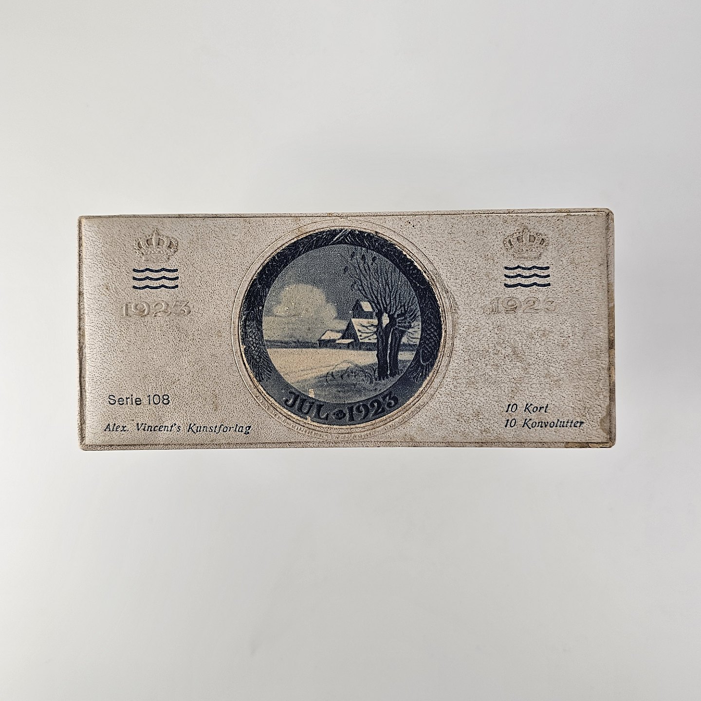 Brevkort med motiv af juleplatte fra 1923 fra Bing & Grøndahl og Royal Copenhagen. 10 kort og 10 kuverterSerie 108