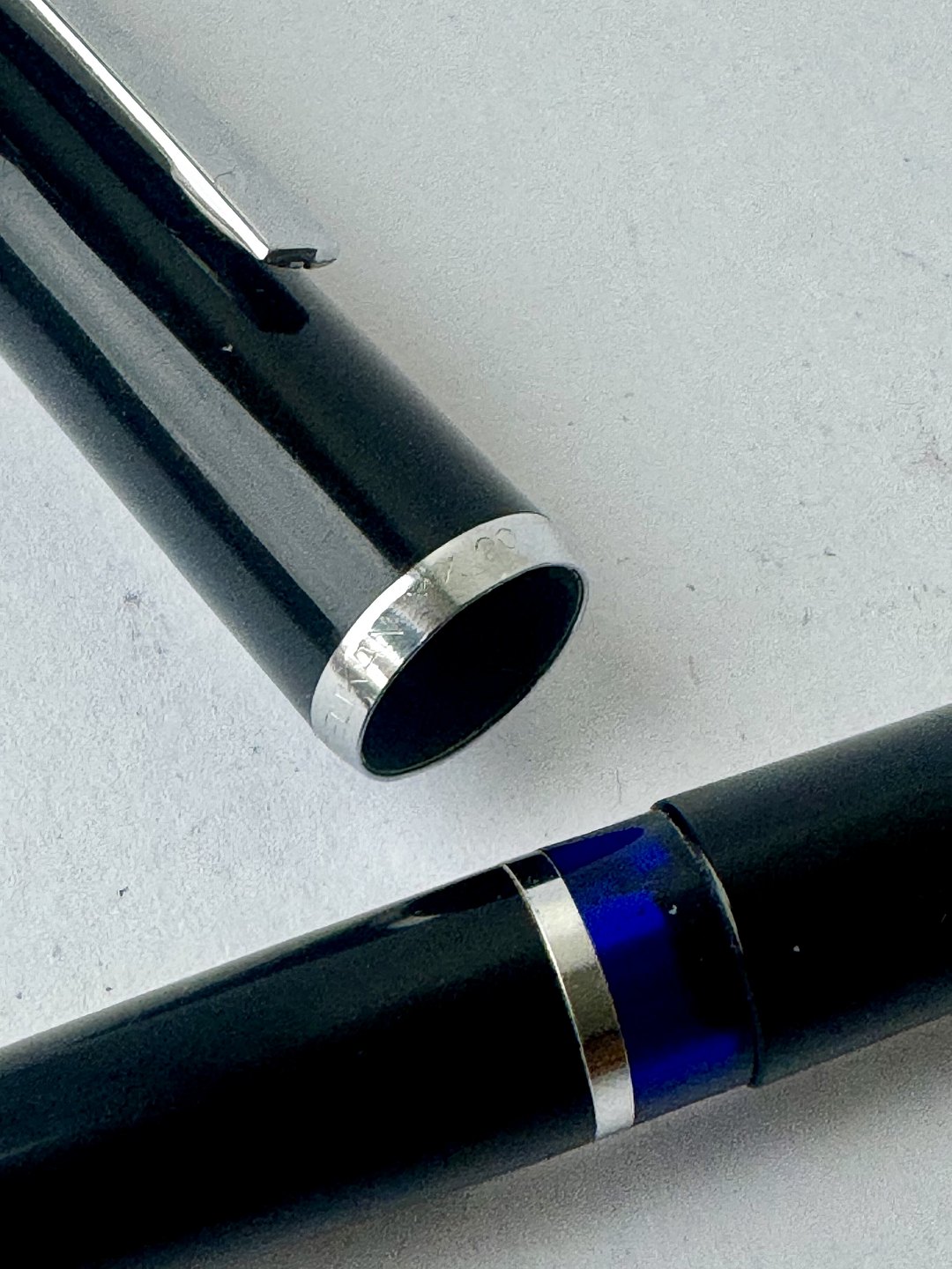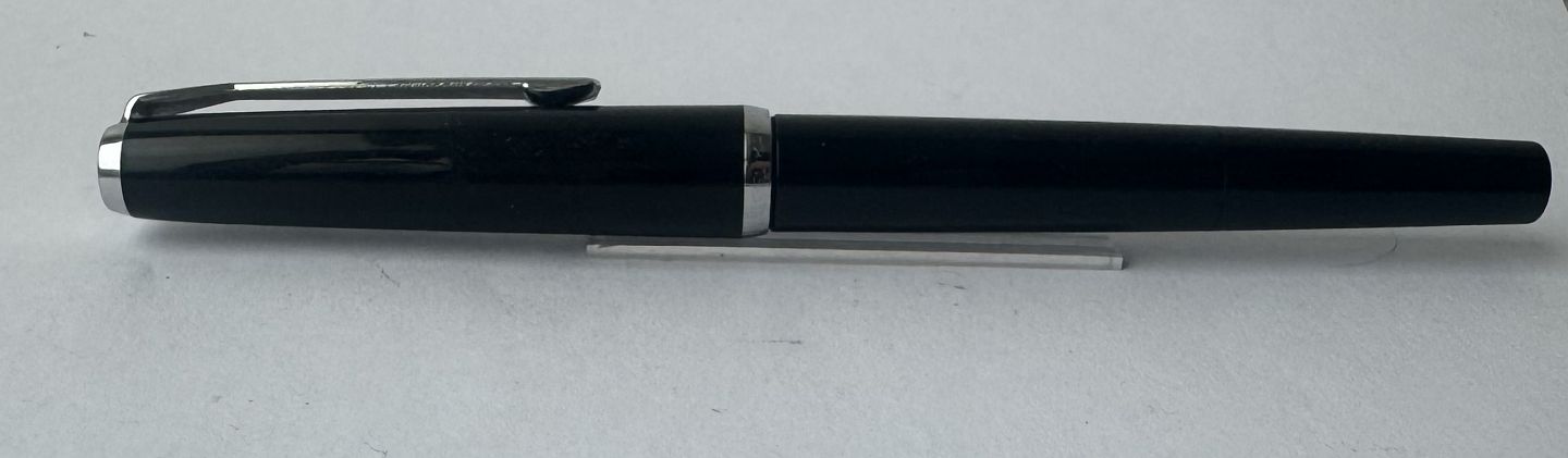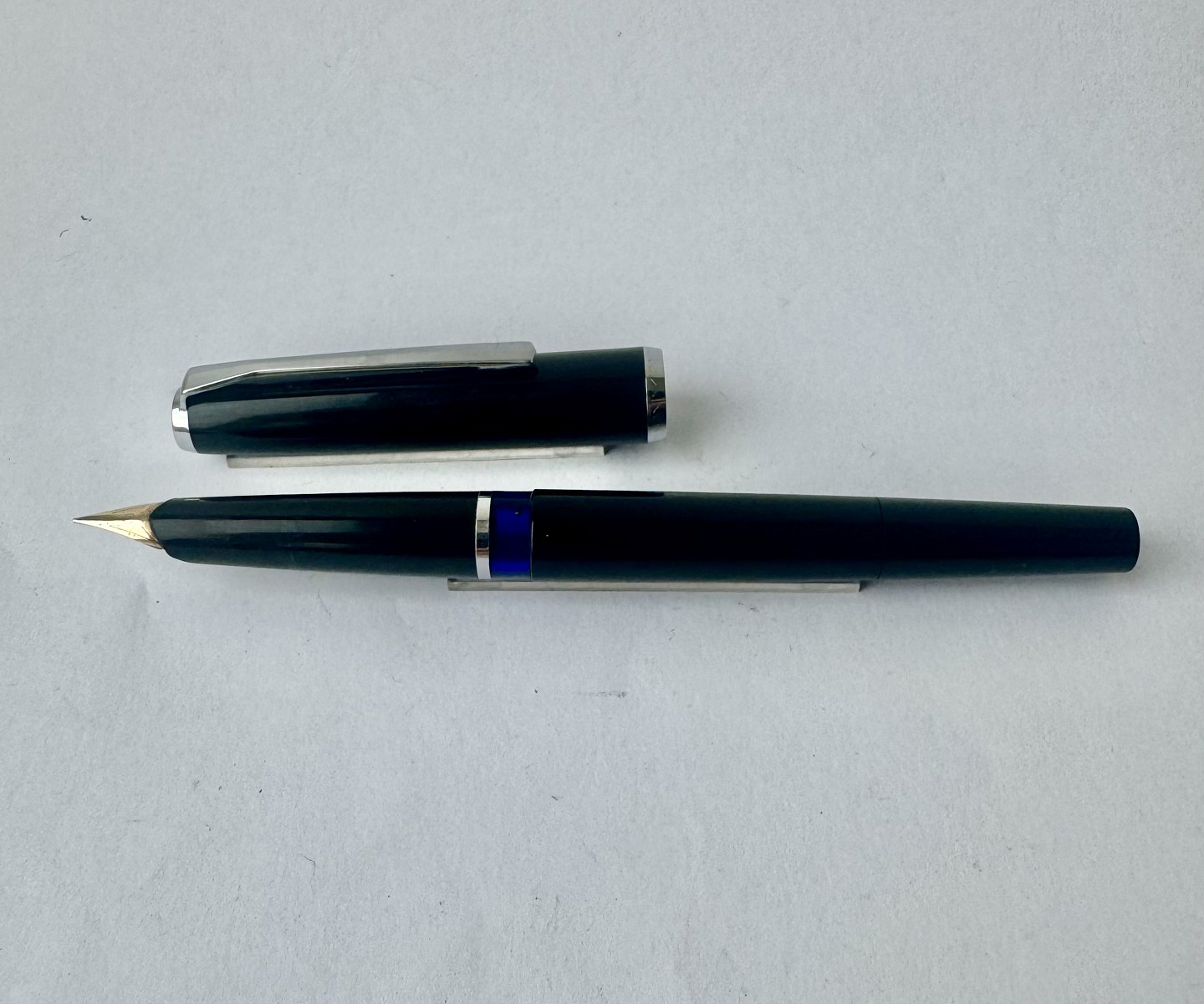Vintage back Pelikan Silvexa 20 fountain pen with chrome-plated parts. Cartridge filling system. Made in Germany in the mid-1960s. A new refill must be inserted before it can write again. Length: 13.4 cm Dealer