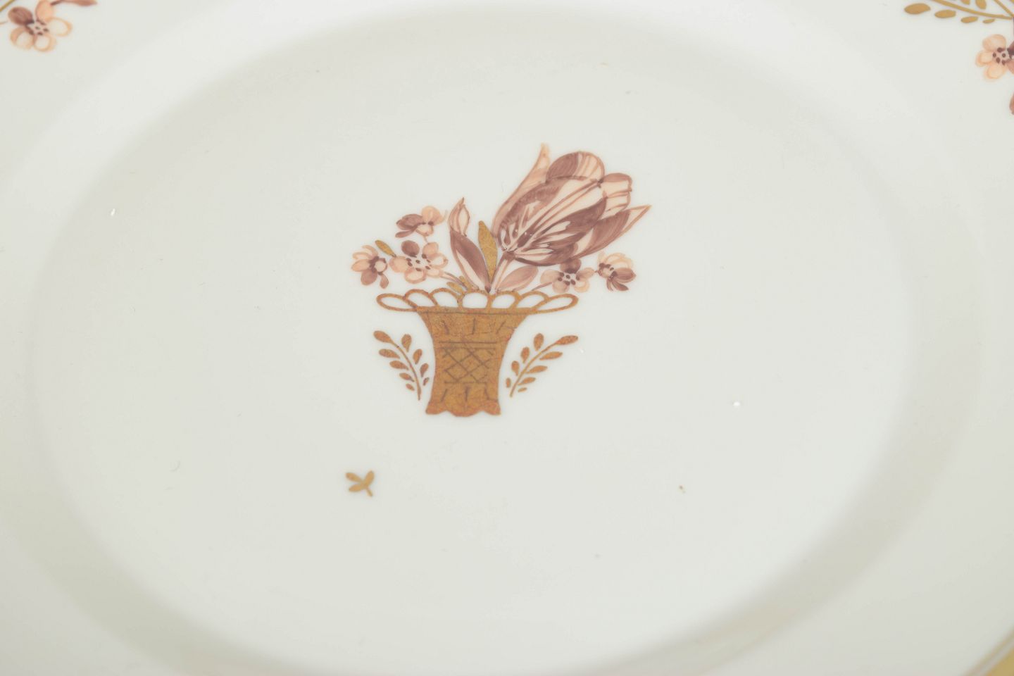 Royal Copenhagen’s “Golden Basket” series is known for its elegant gilded details and hand-painted floral decoration, combining traditional Danish porcelain craftsmanship with a refined, timeless aesthetic. The series remains highly sought after by collectors.