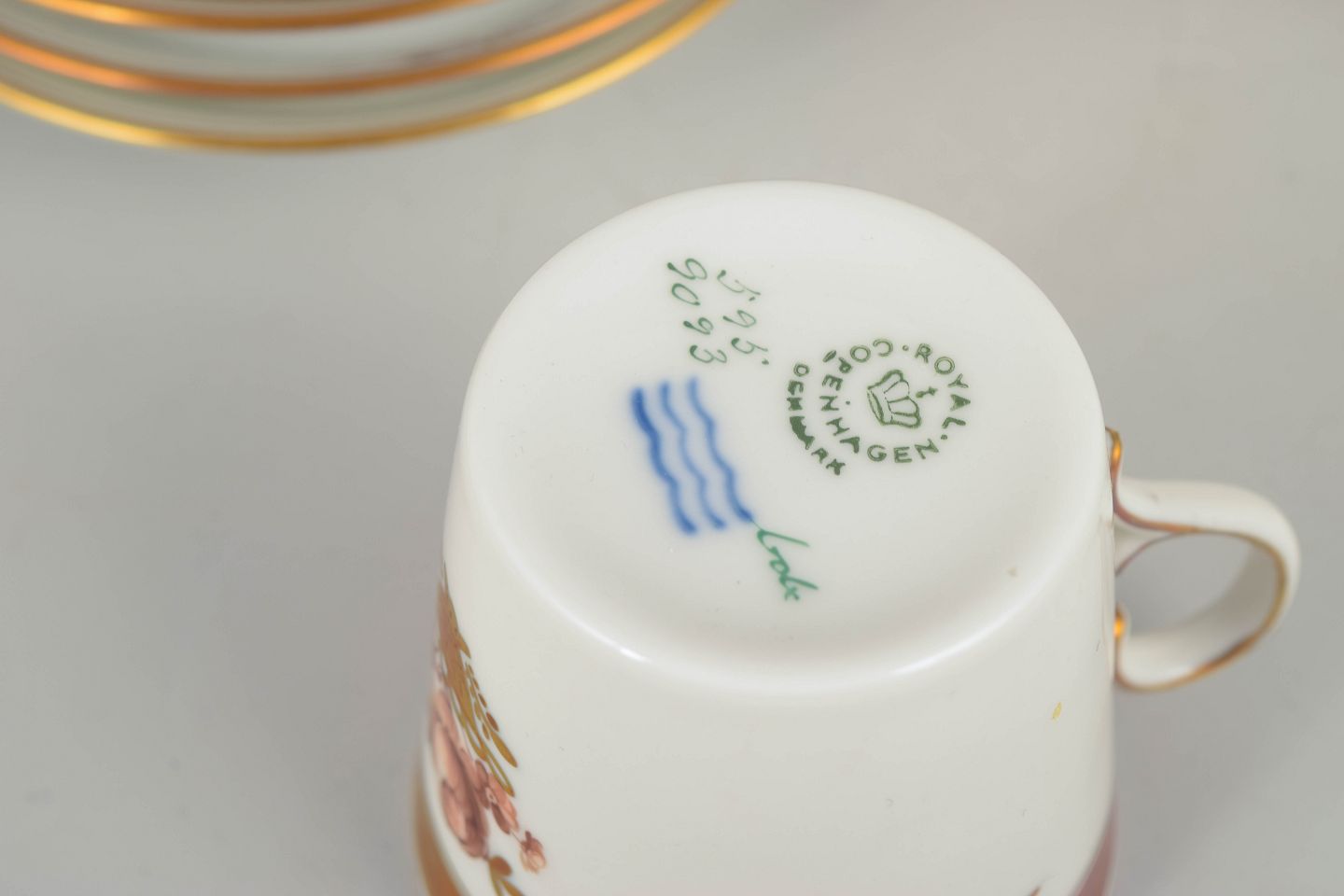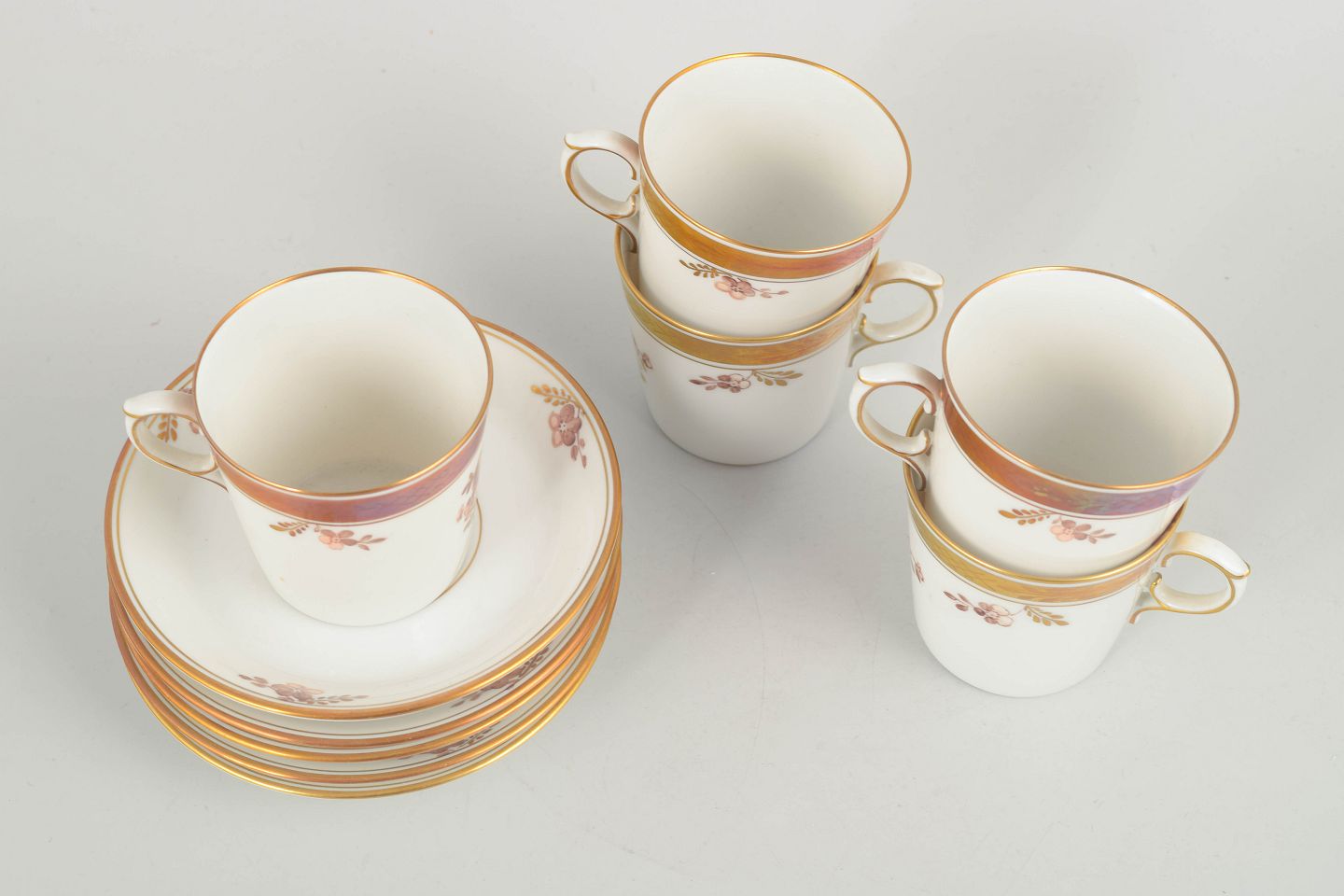 Royal CopenhagenGolden Basket, Set of 5 Demitasse Cups.