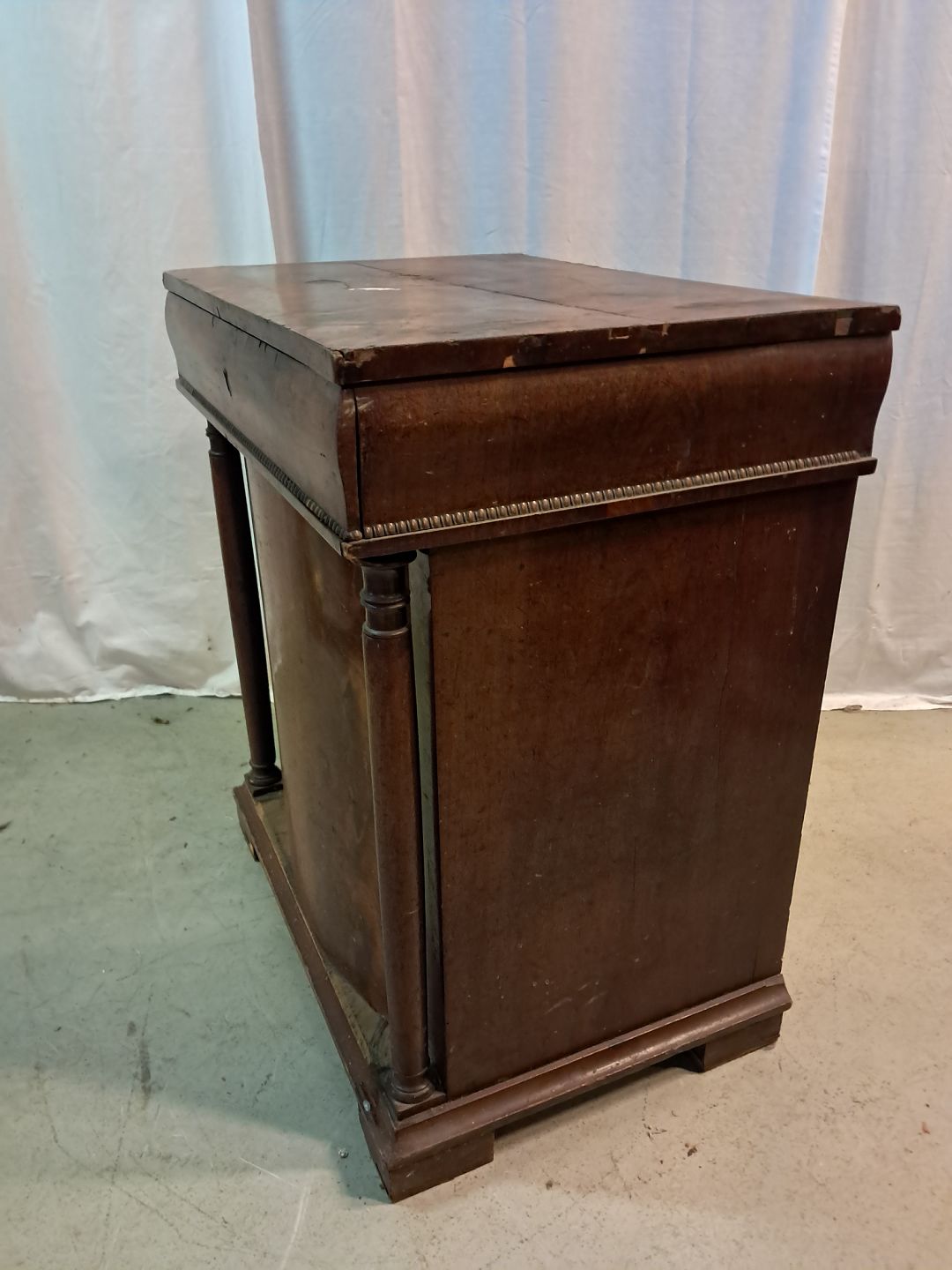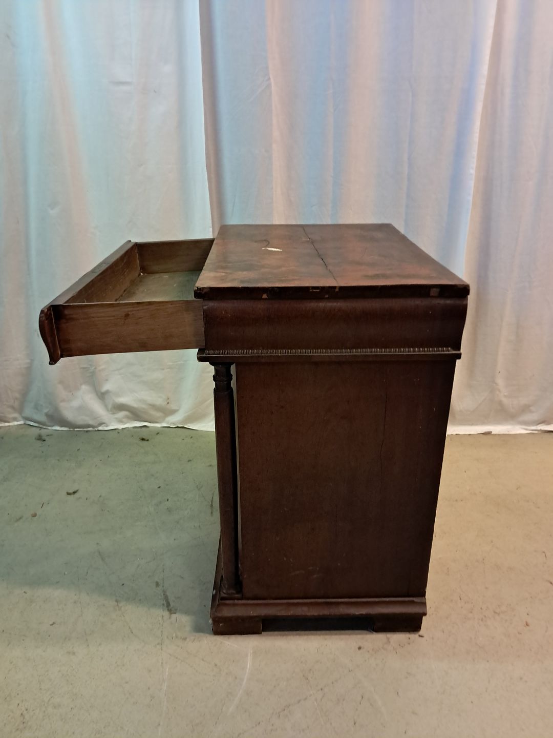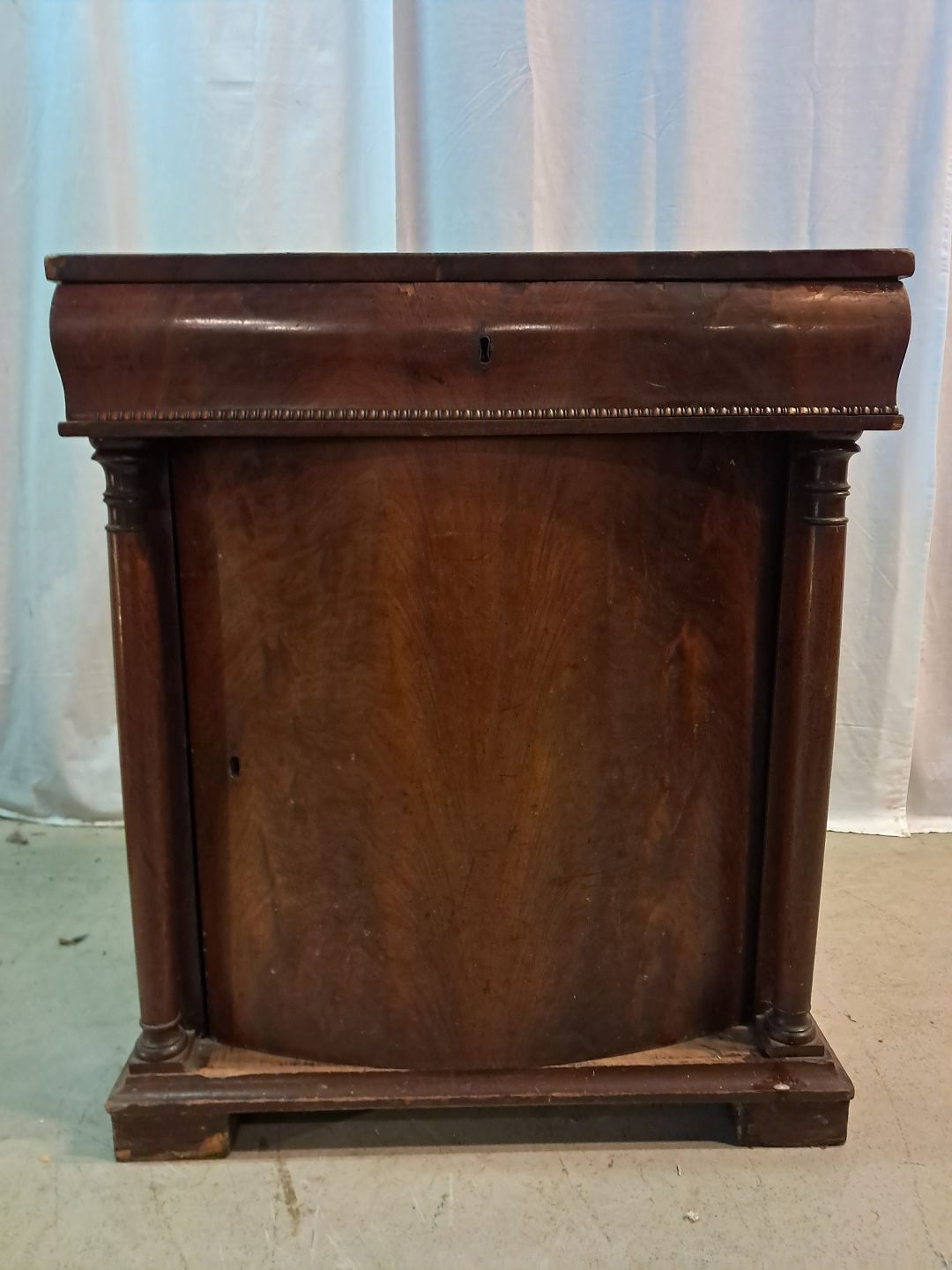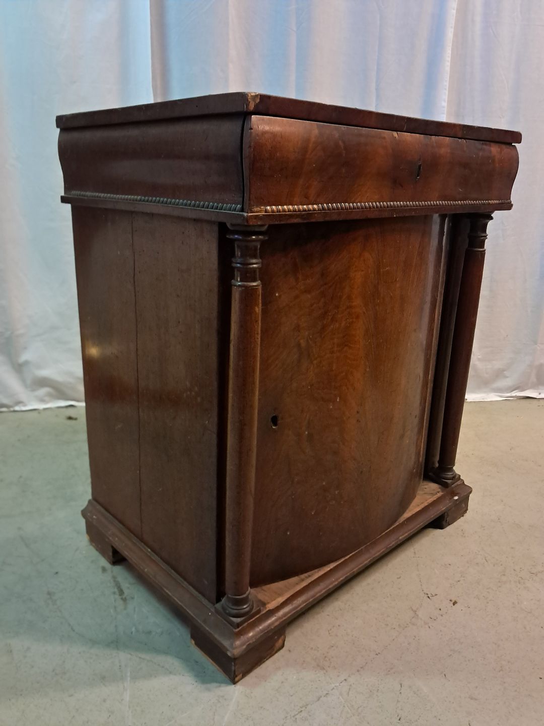 Skab i fineret mahogni, fra 1900erne.Det har brugsspor og finer defekter.