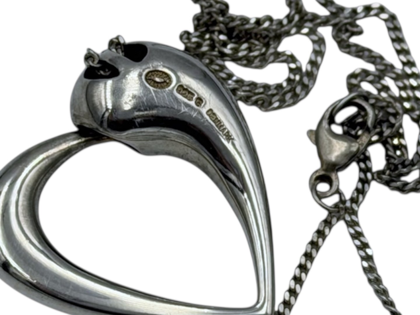 Georg Jensen sterling silver, Heart pendant and necklace.This was produced after 1945.