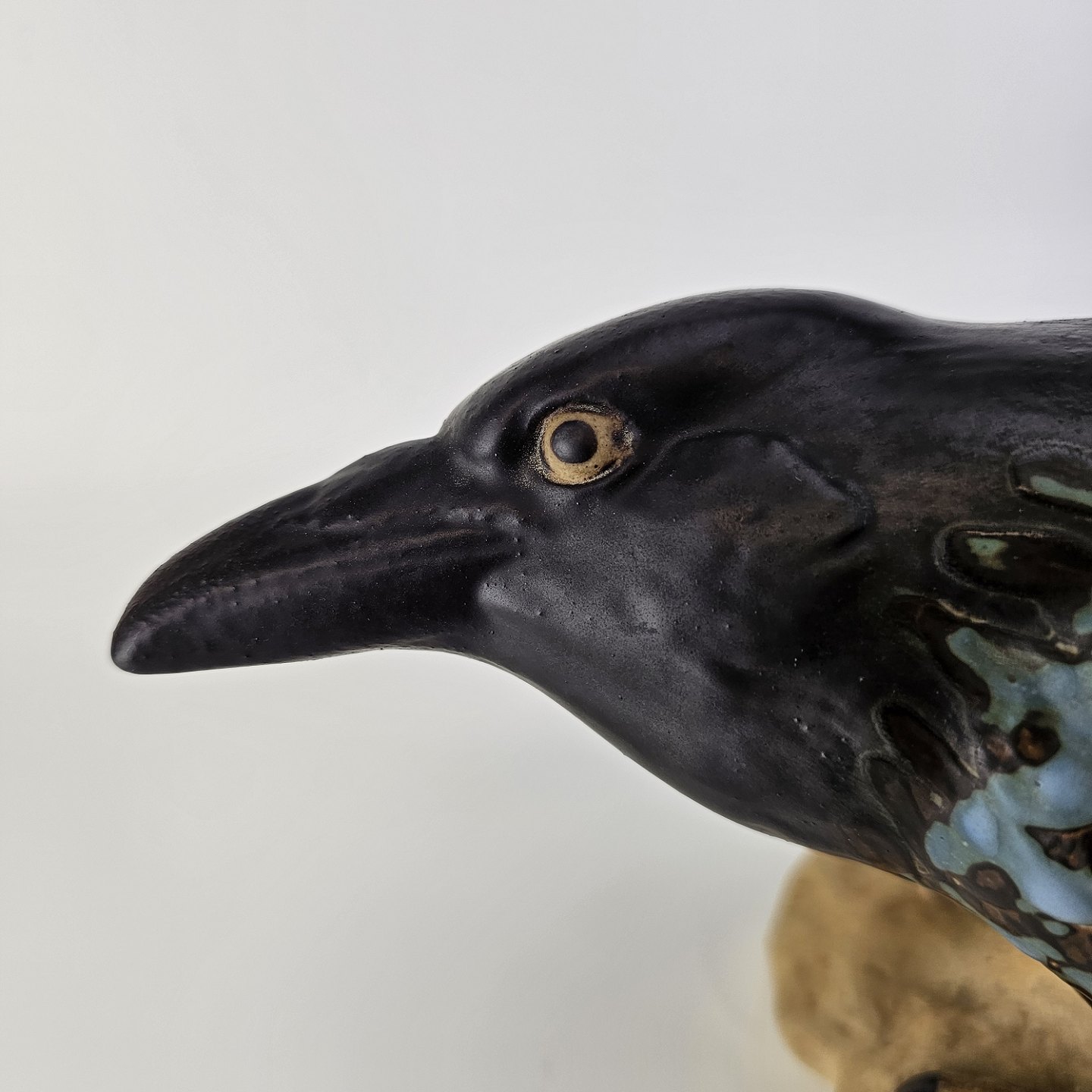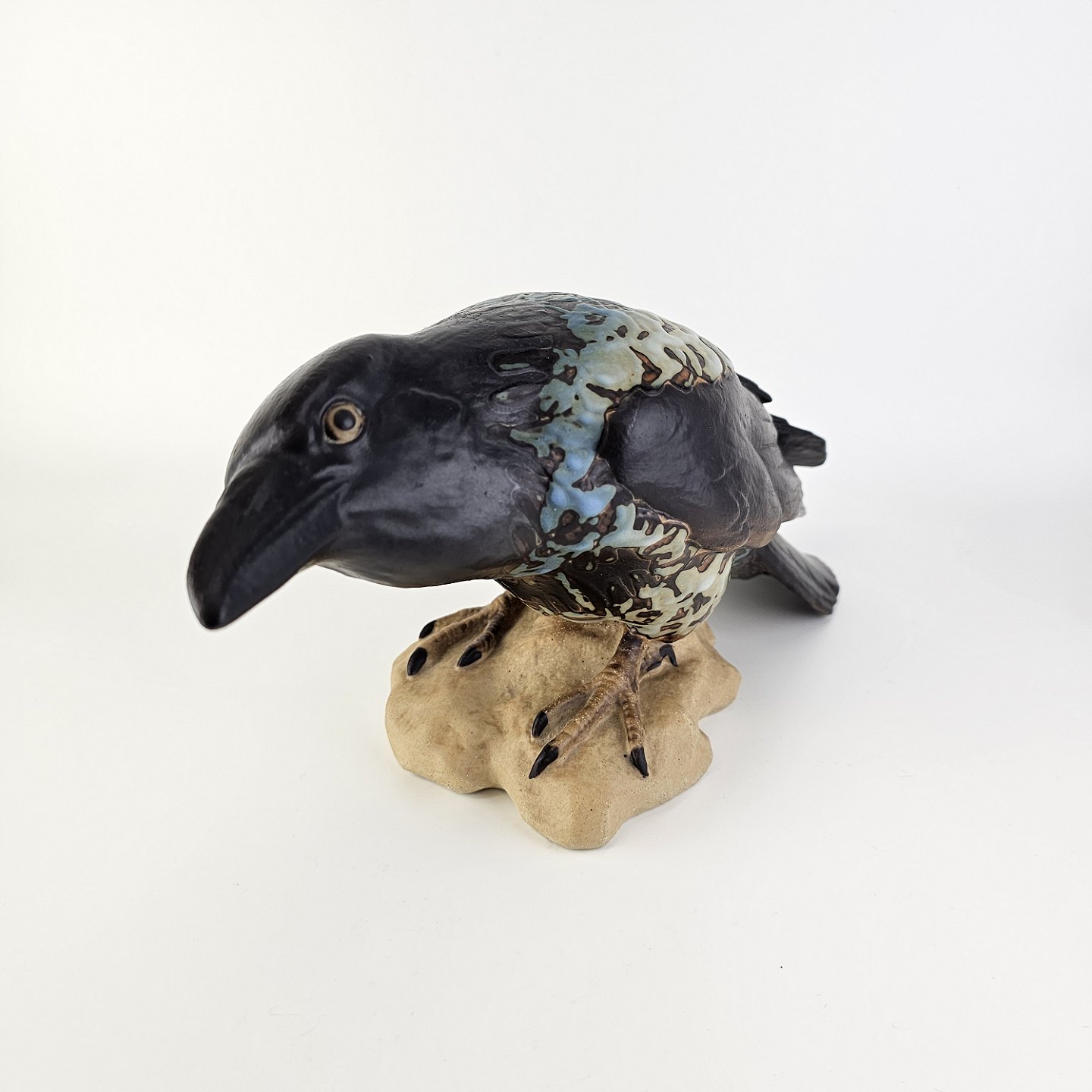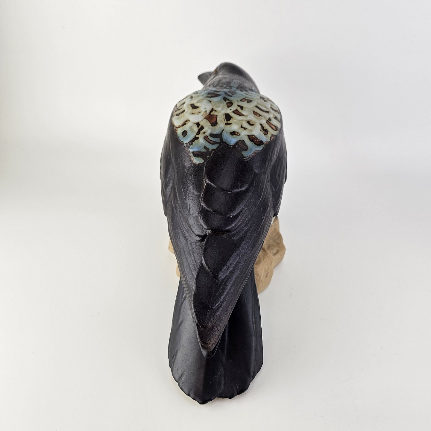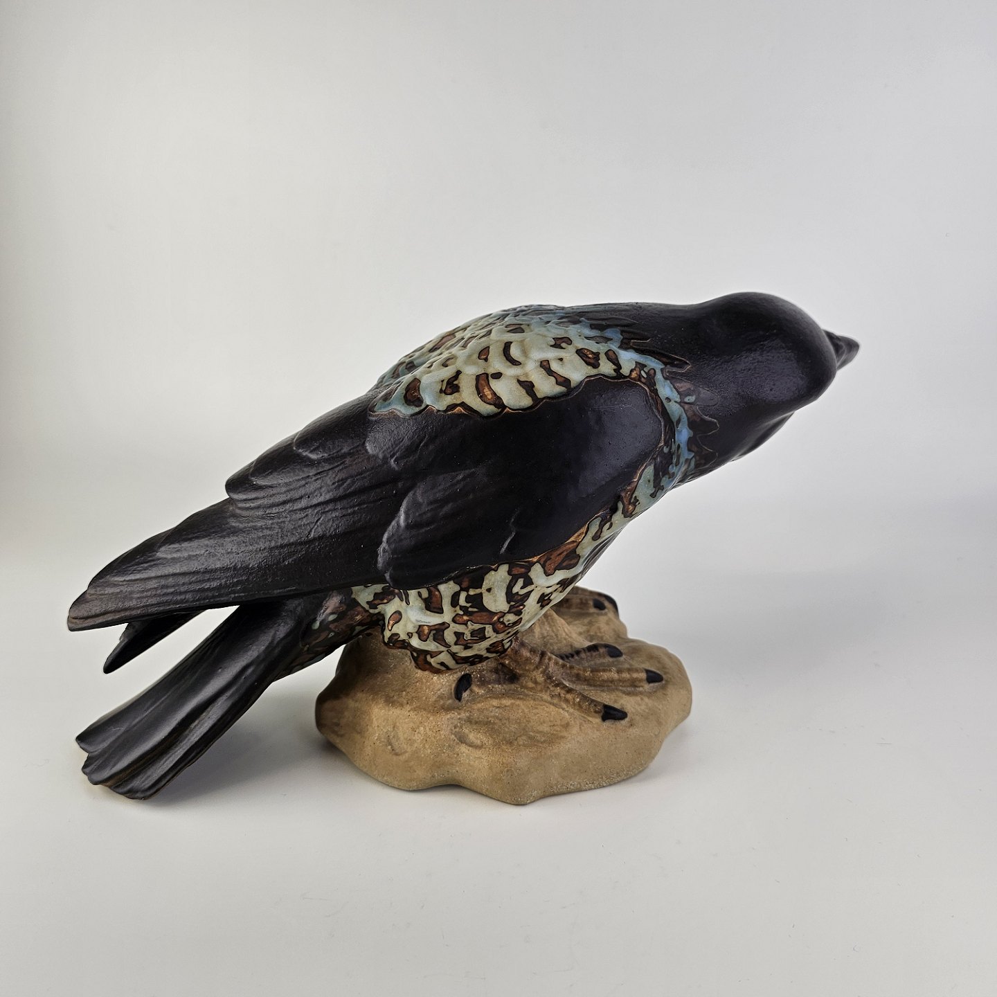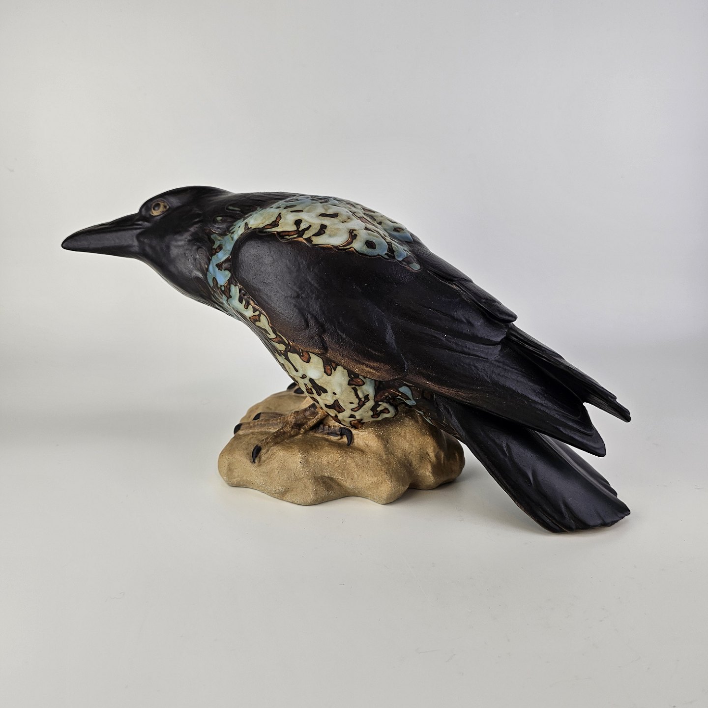 Figur i stentøj med motiv af en krage på en stenNr. 1714
