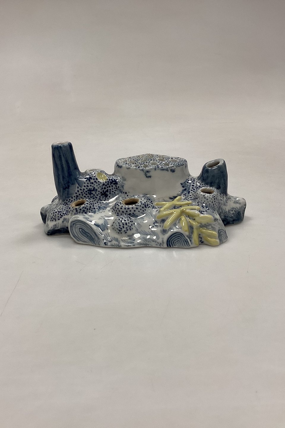Royal Copenhagen Thorkild Olsen Sculpture/Vase No. 4731. Fantasy motif with underwater plants in yellow, white and blue.Measures 15 cm x 10 cm x 6 cm / 5.90 in. x 3.93 in. x 2.36 in.
