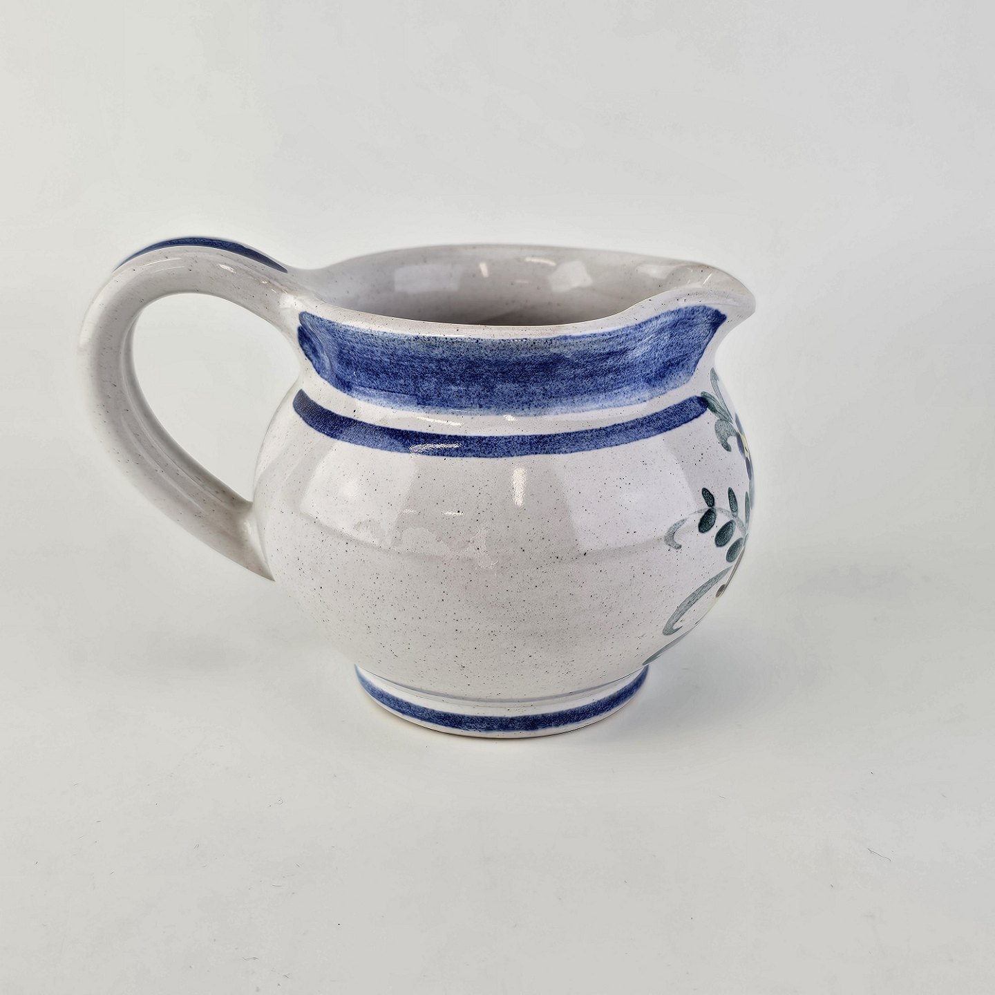 Flødekande i keramik med blå detaljer og blomsterdekorationProducent Lars Syberg keramik