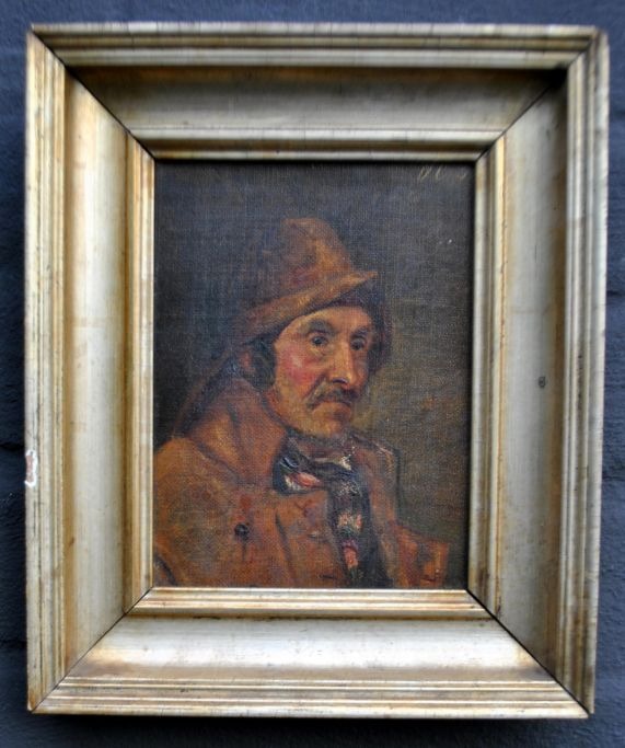Carlsen, Oscar Conrad (1840 - 1864) Denmark: Portrait of a fisherman. Oil on canvas/cardboard. Signed: OC 1856. 15 x 11 cm.Framed in an antique silver frame: 23.5 x 19.5 cm.