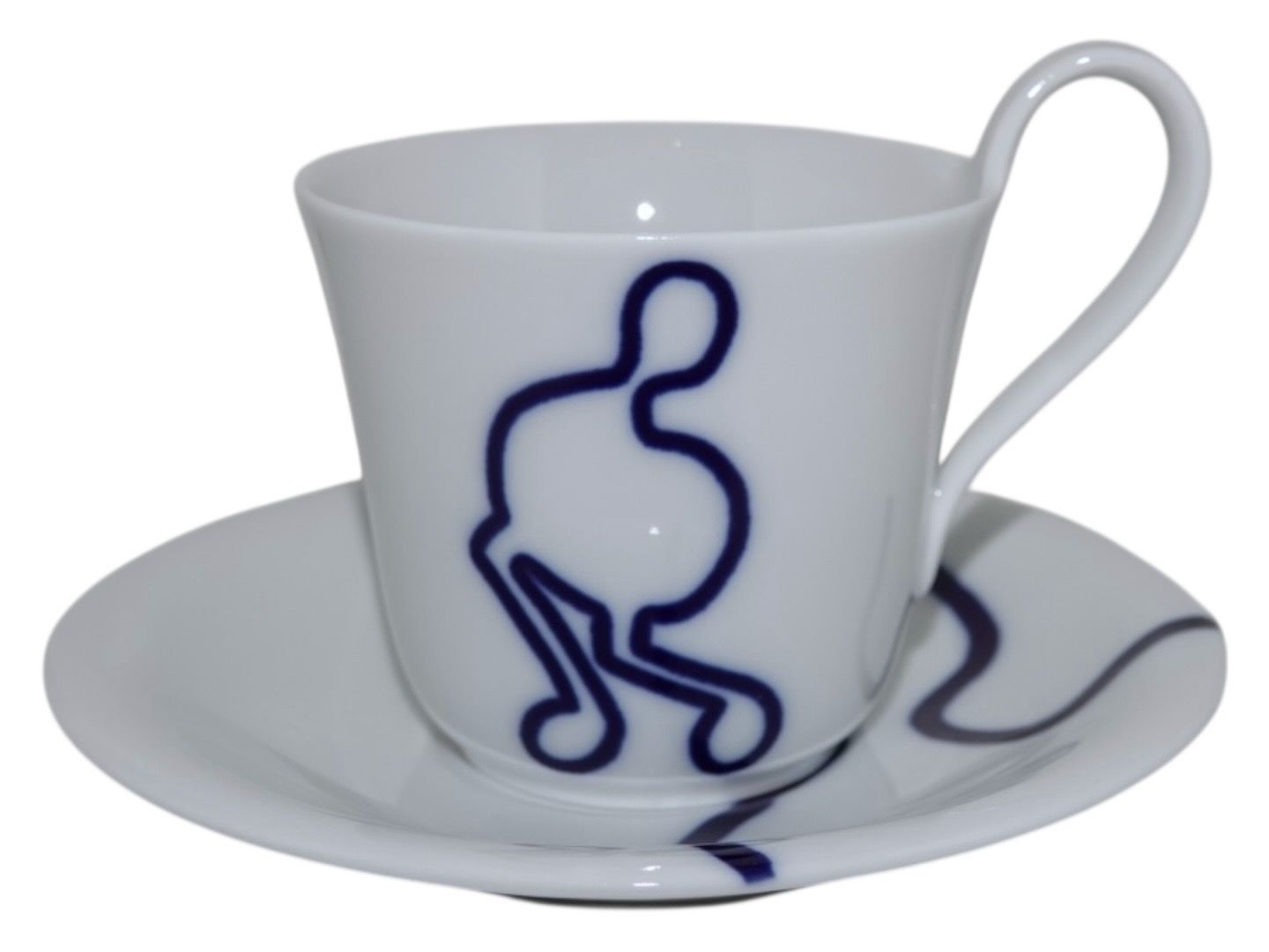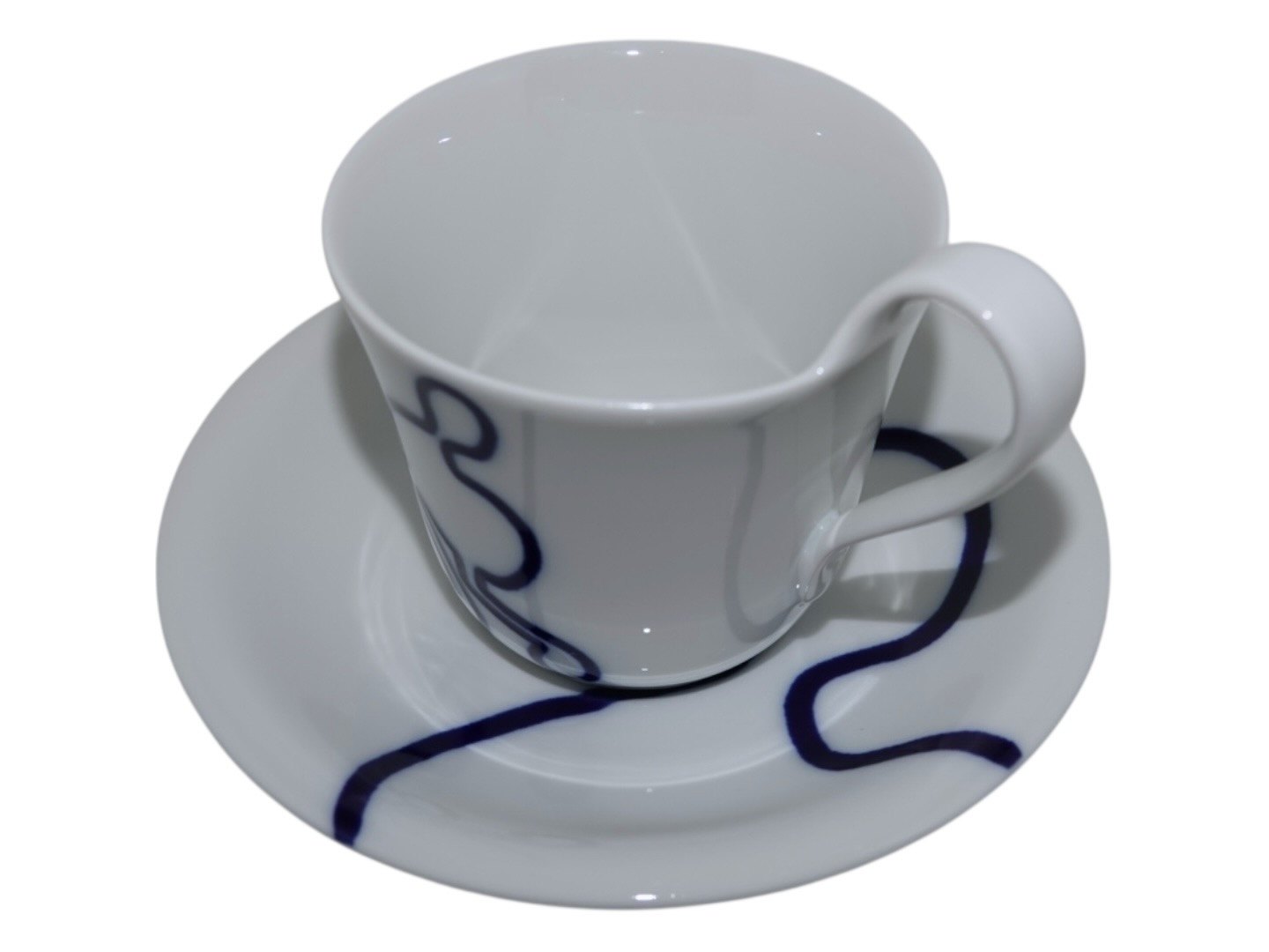 Royal Copenhagen Musica, high handle cup with matching saucer. Decoration B.Designed by Monica Ritterband.