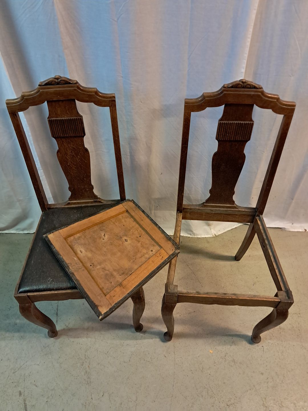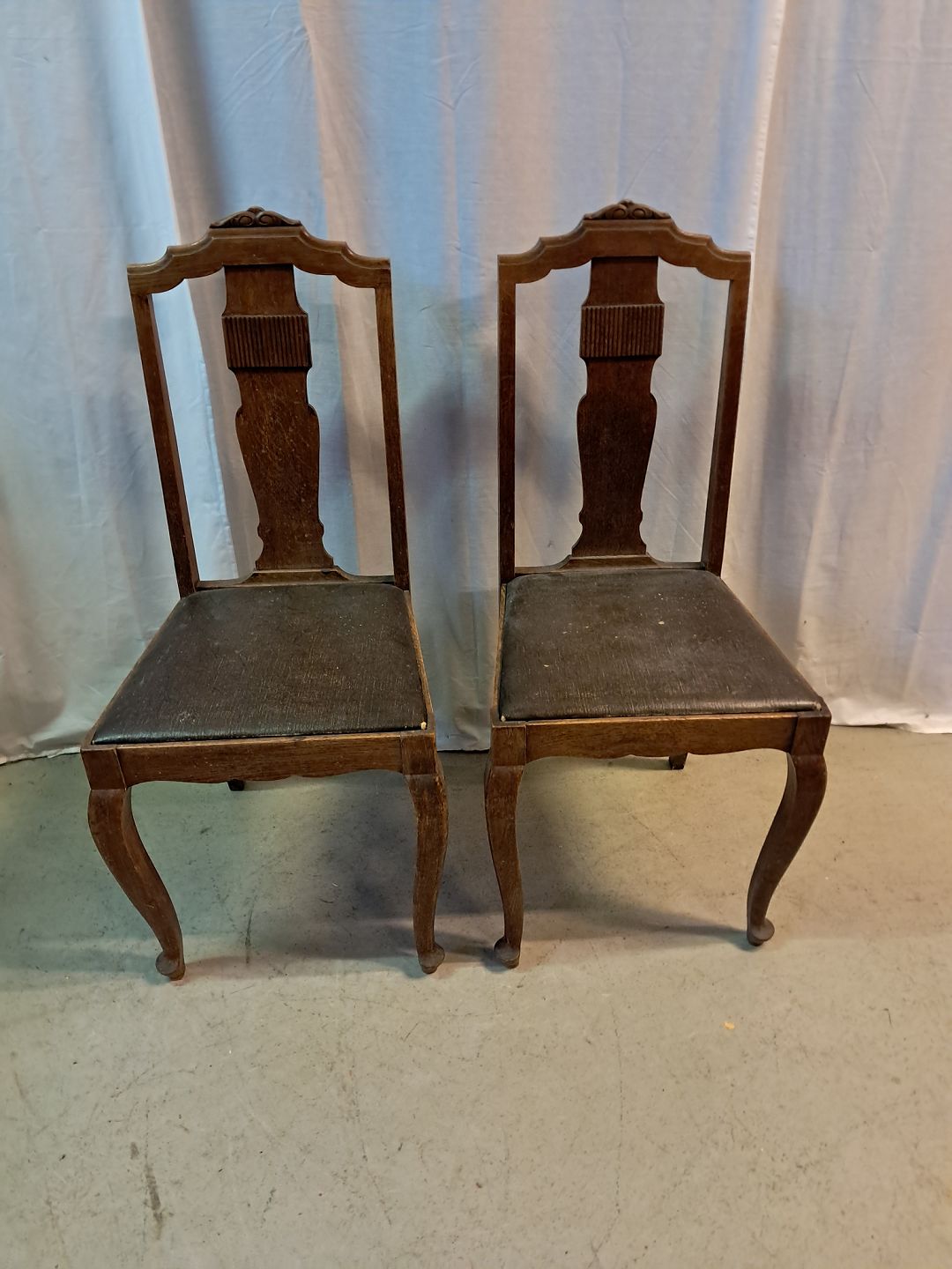 2 Stole i massivt egetræ, fra 1920erne.De har brugsspor.