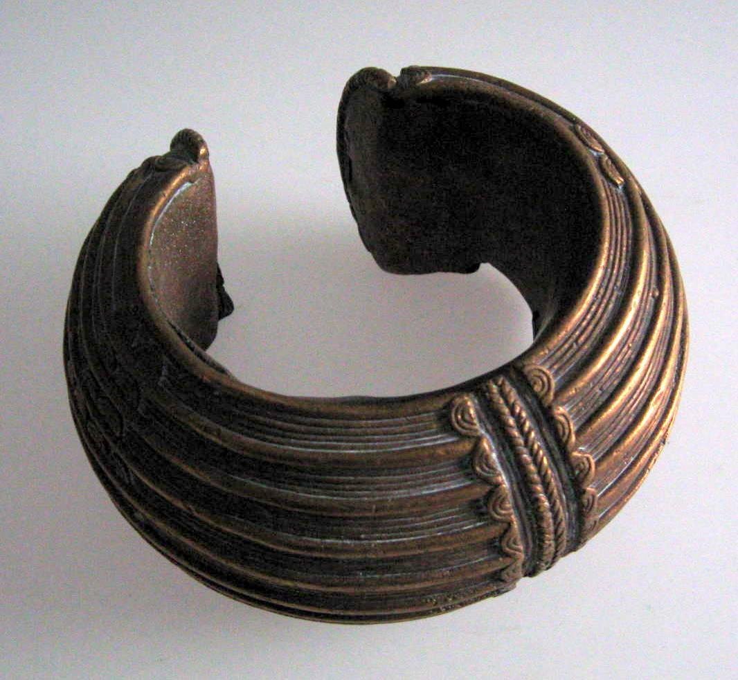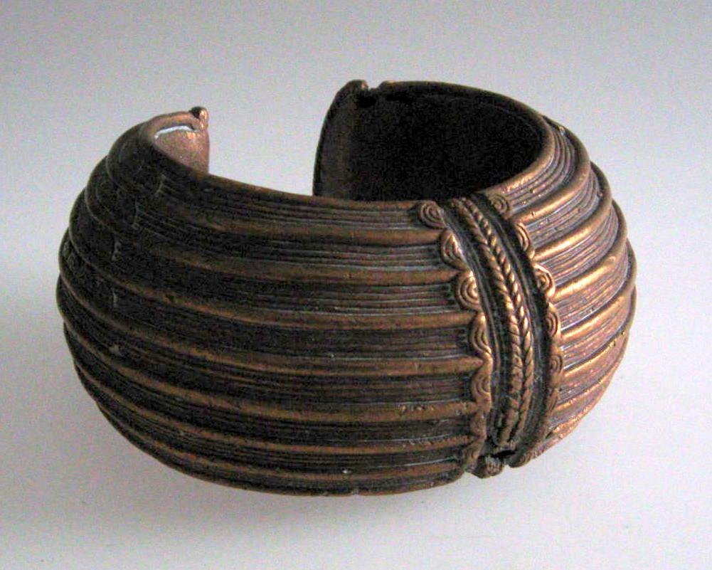 African bangle, 19th century. In copper. Decorated with geometric pattern. Dia.: 12 cm.Item number: 6949