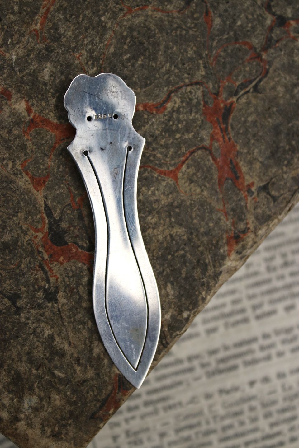 Old bookmark in silver, stamped 830s with floral motif.Height: 7.2 cm.