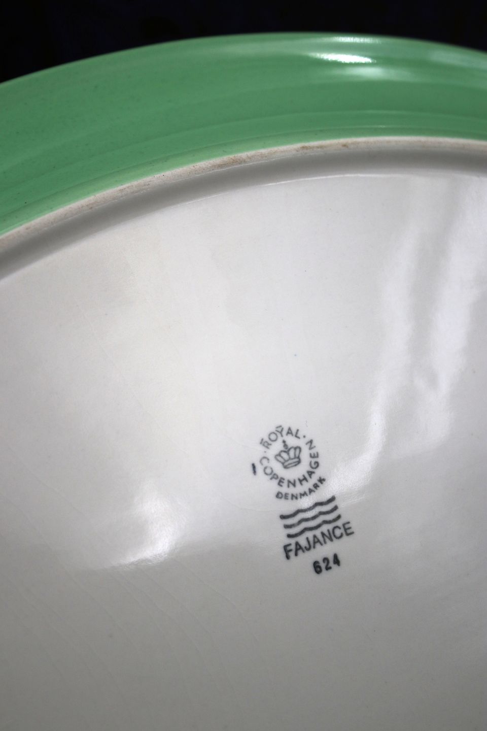 Old oval Ursula faience serving dish / plate from Royal Copenhagen designed by Ursula Munch-Petersen with green glaze.Decoration number: 624. 1.sort. 33x22.5cm.