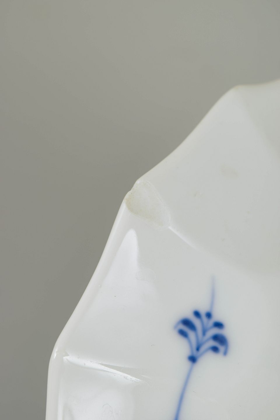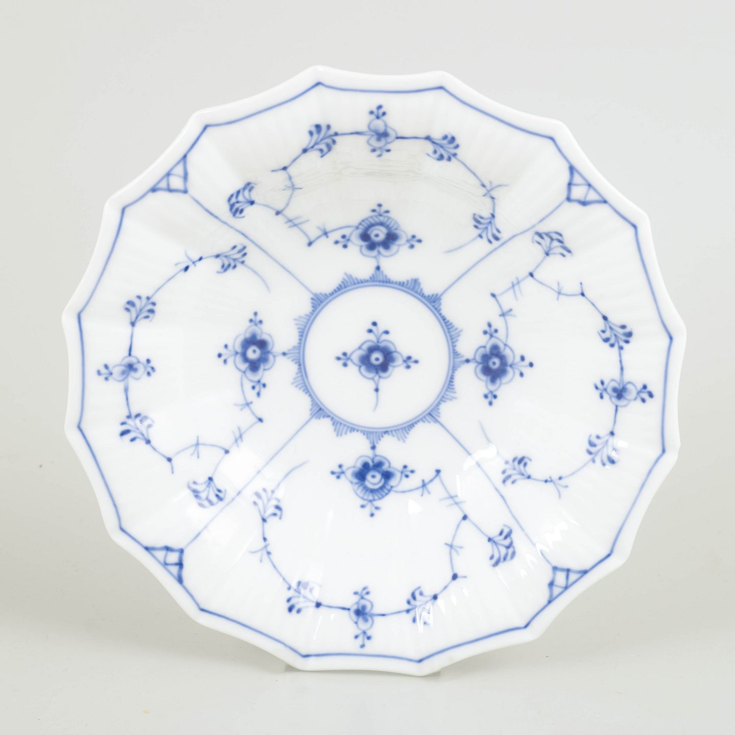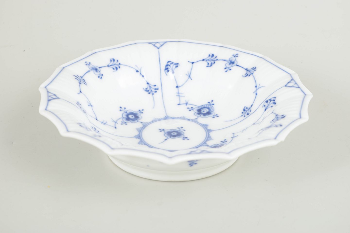 Royal Copenhagen Blue Fluted Plain dish, 1930s.Rare dish in Blue Fluted Plain, made in a multi-lobed form with gently scalloped rim and decorated with hand-painted cobalt blue underglaze. The dish features the classic fluted decoration arranged in segmented panels, characteristic of more elaborate serving pieces from the interwar period.