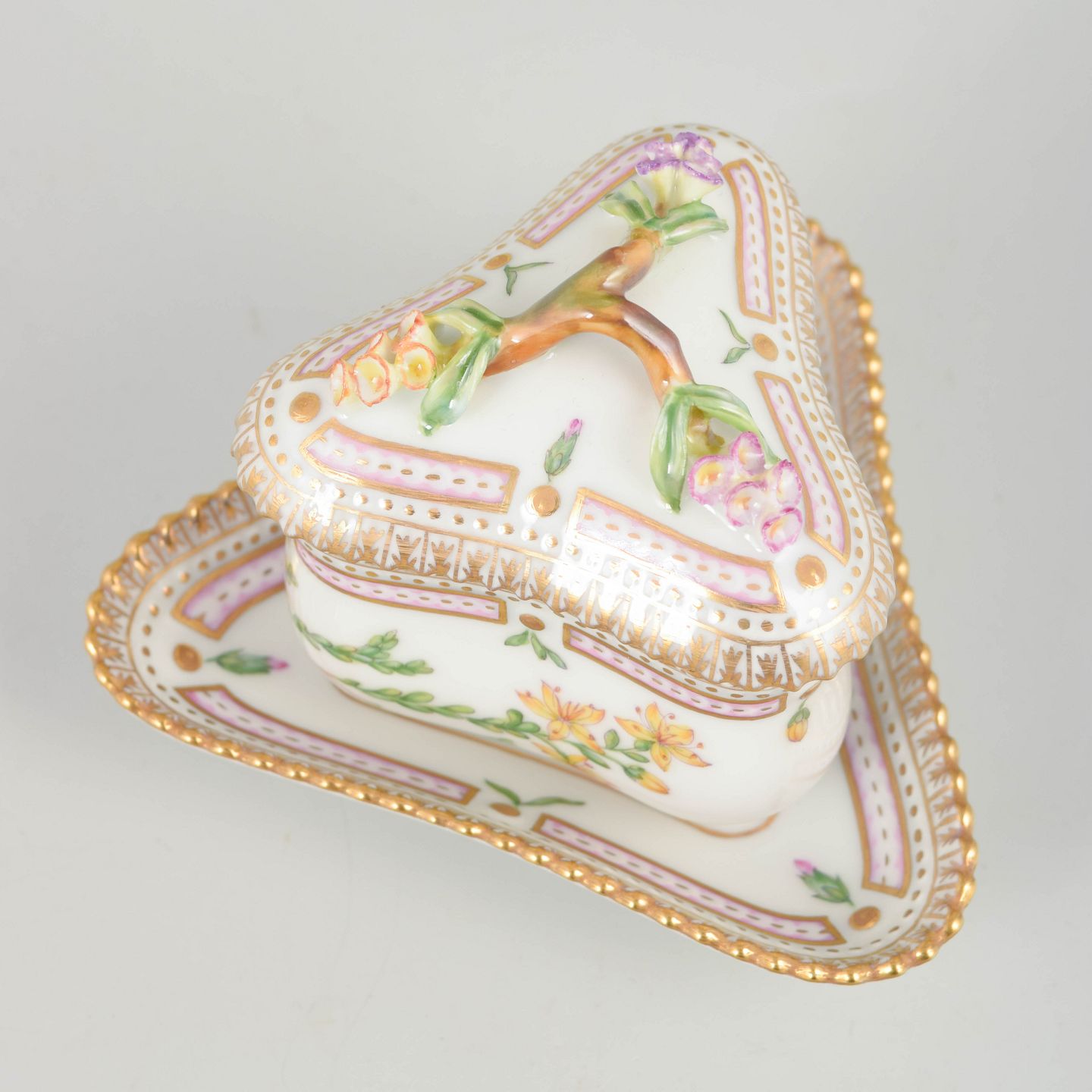 Bio: The Flora Danica service was introduced in 1790 and is regarded as one of Royal Copenhagen’s most prestigious productions. The decoration is based on the monumental botanical work Flora Danica and is renowned for its high level of detail and exceptional craftsmanship. Smaller serving pieces such as cream cups formed an integral part of the classic coffee service and today enhance the overall collectability of the set.