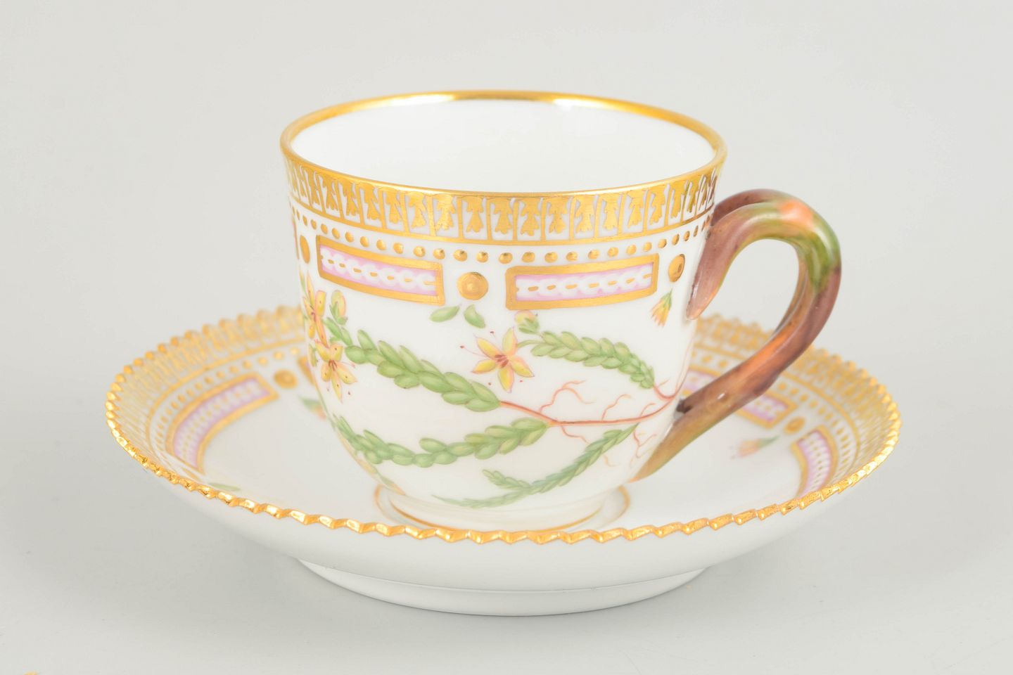 Royal Copenhagen Flora Danica Demitasse Cup with Saucer, 1960sElegant demitasse cup with matching saucer from the iconic Flora Danica service. The cup is hand-painted with a botanical motif derived from the Flora Danica publication and executed in the service’s characteristic refined form with a decorative rim. A classic and exclusive cup.
